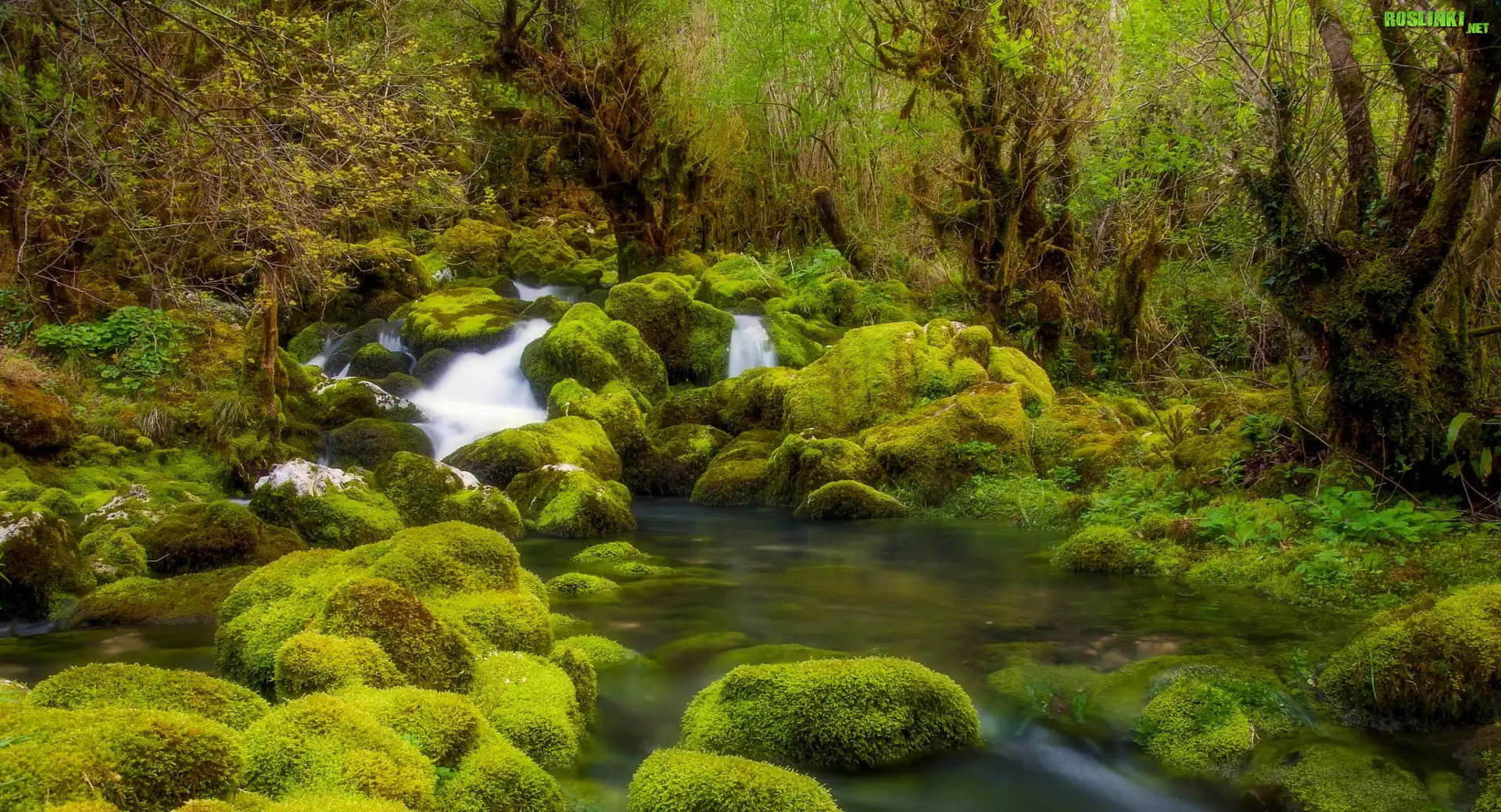 Rośliny: Las, Mech, Rzeka, Kamienie