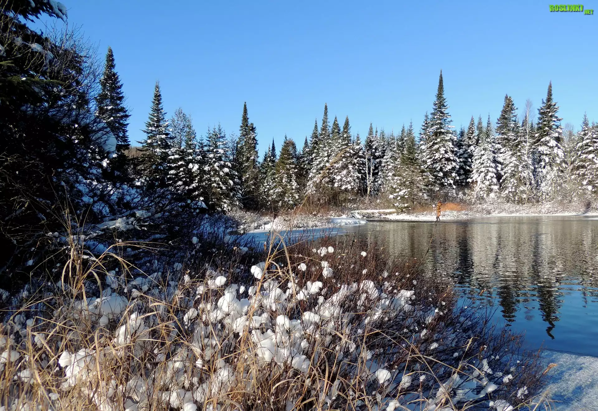Rośliny: Śnieg, Rzeka, Las, Trawy