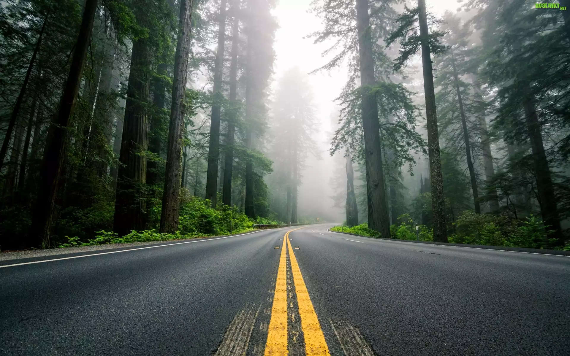 Rośliny: Las, Droga, Sekwoje, Mgła