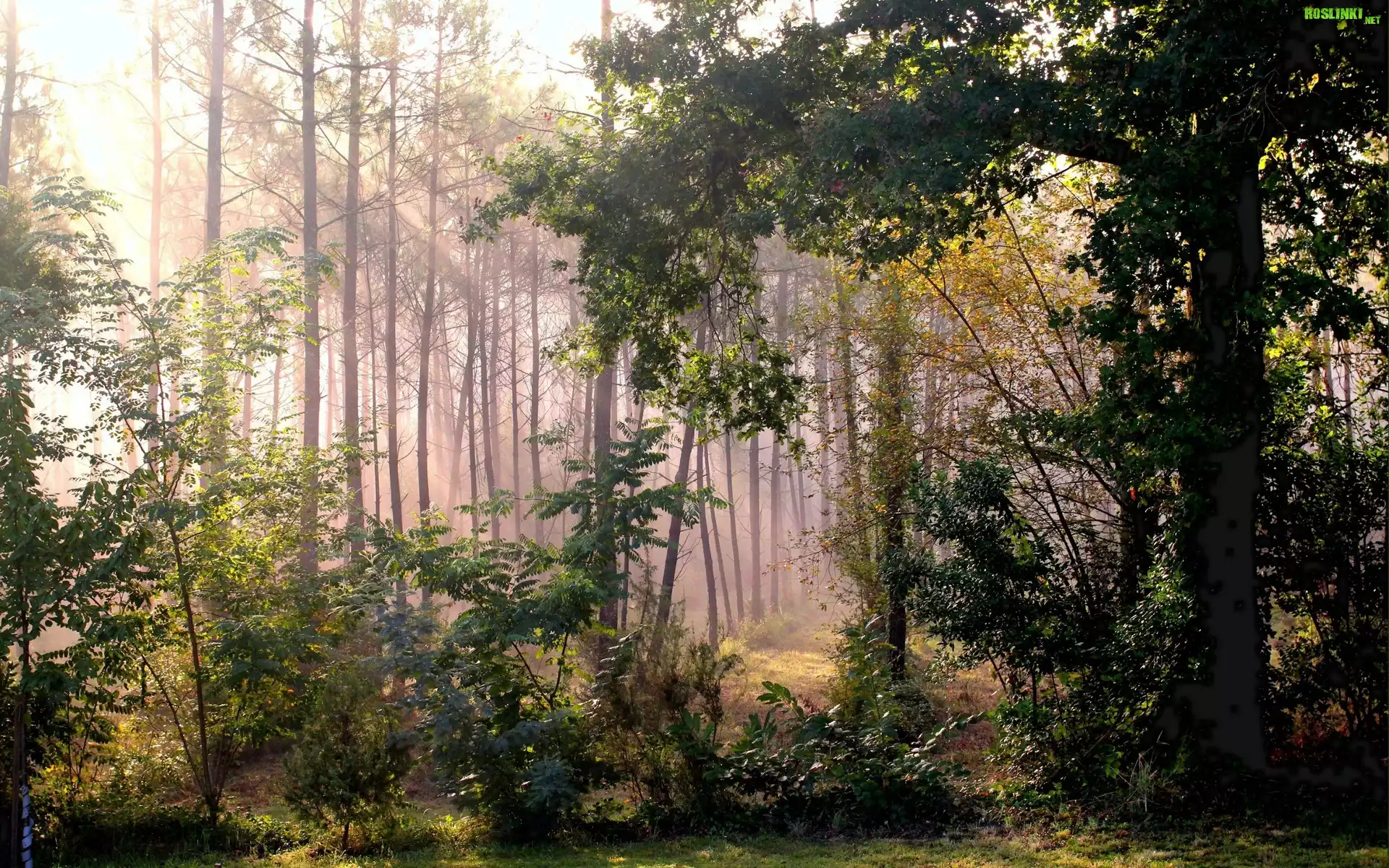 Rośliny: Las, Drzewa, Krzewy, Promienie, Słońca, Jesień
