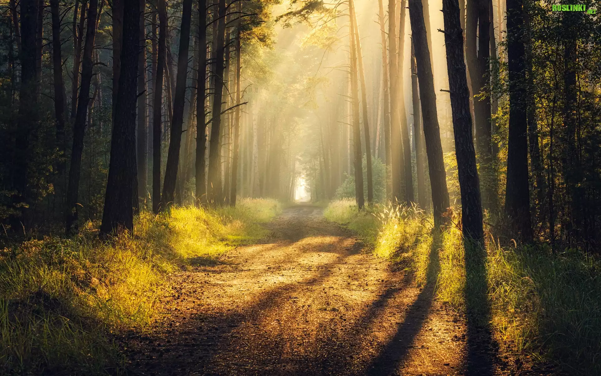 Rośliny: Las, Droga, Promienie słońca, Drzewa