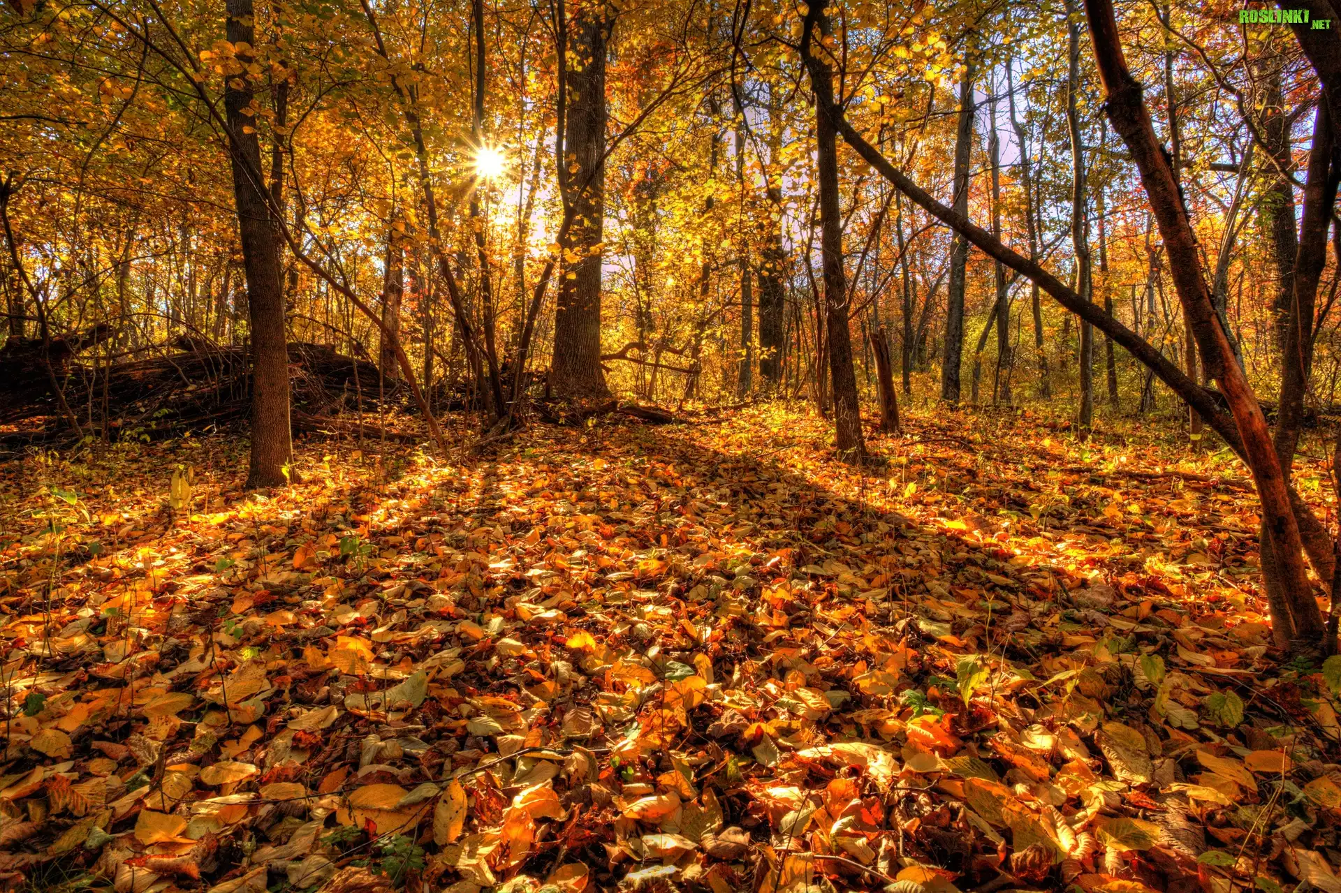 Rośliny: Las, Liście, Promienie Słońca, Jesień