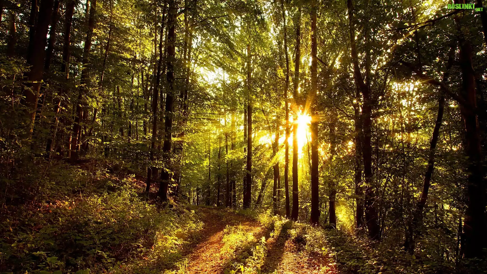 Rośliny: Las, Drzewa, Ścieżka, Liście, Słońce, Promienie