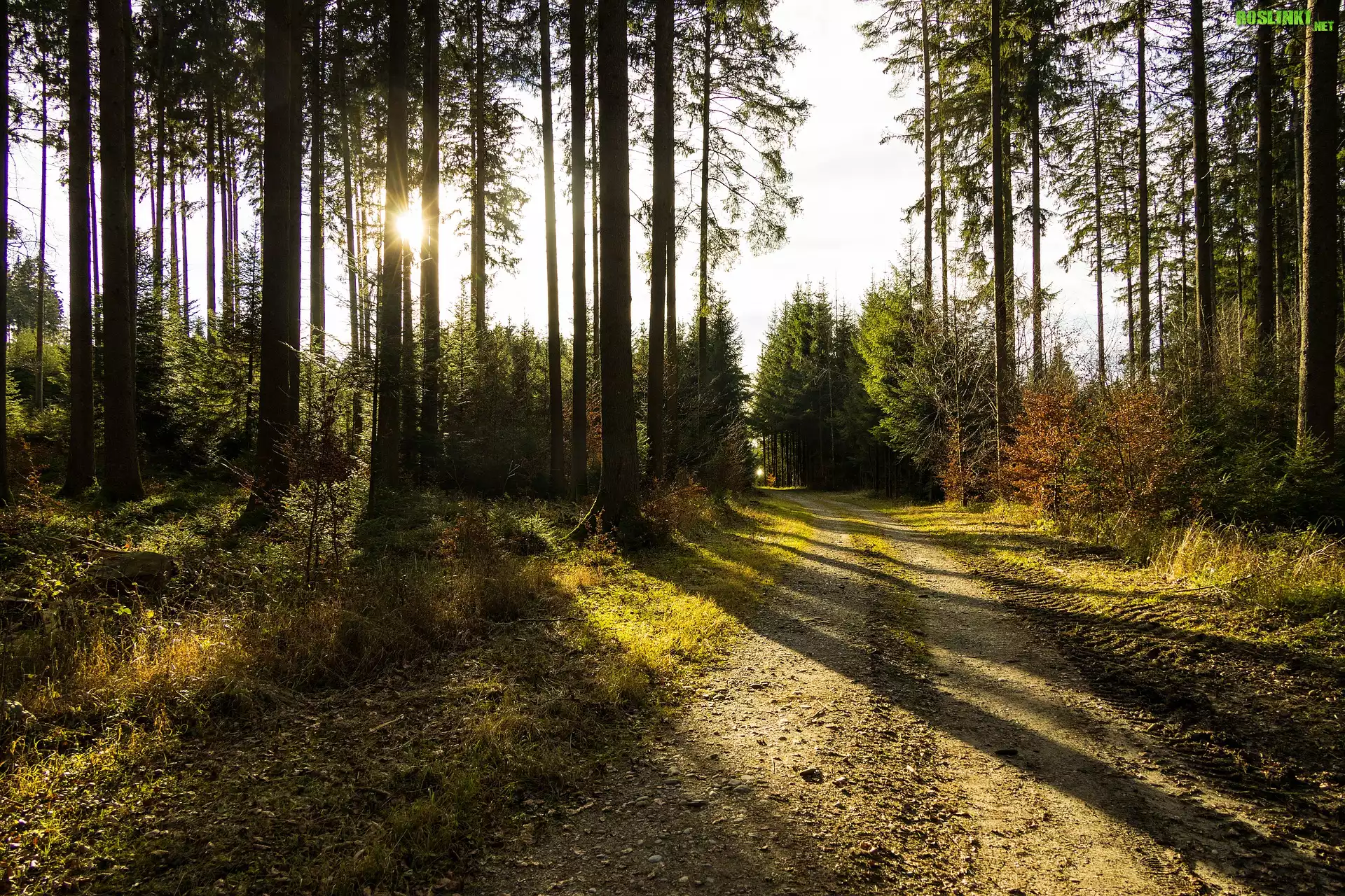 Rośliny: Las, Drzewa, Droga, Światło, Słońce, Cienie