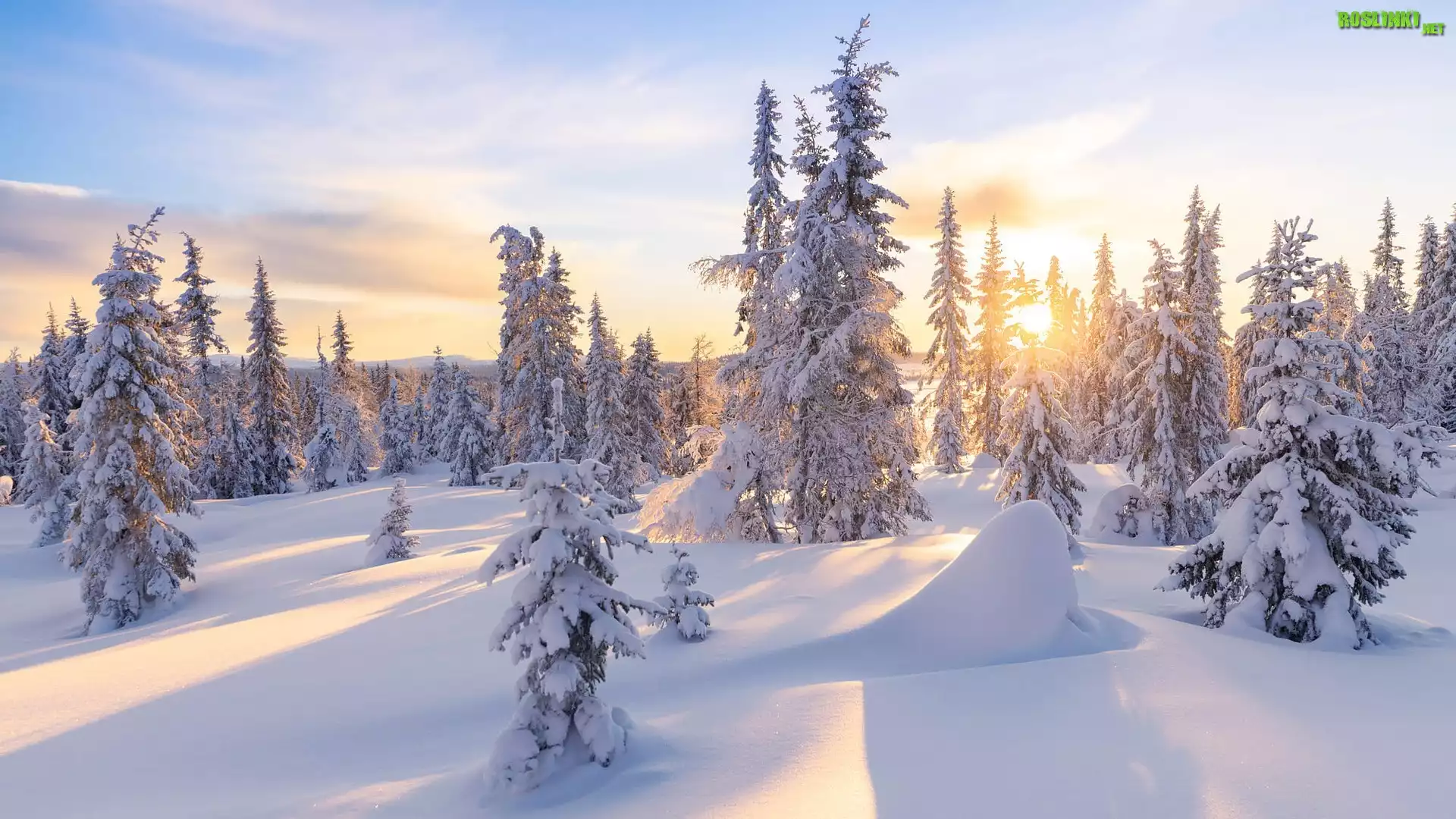 Rośliny: Zima, Ośnieżone, Drzewa, Las, Słońce, Śnieg