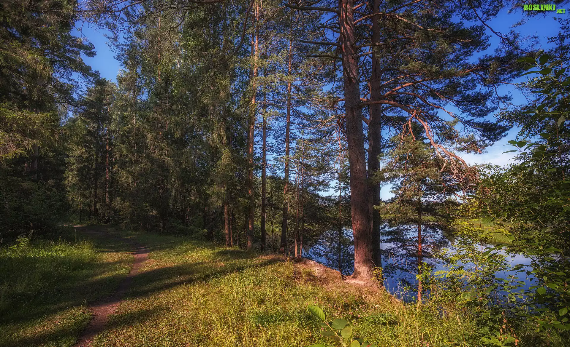 Rośliny: Las, Drzewa, Droga, Trawa, Rzeka