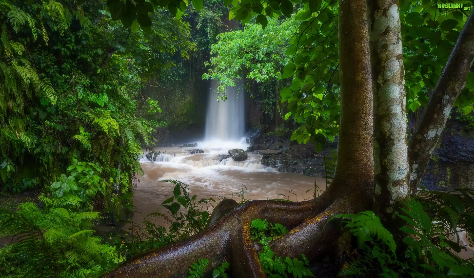 Rośliny: Las, Drzewa, Rzeka, Kamienie, Wodospad, Sumampan Waterfall, Bali, Indonezja
