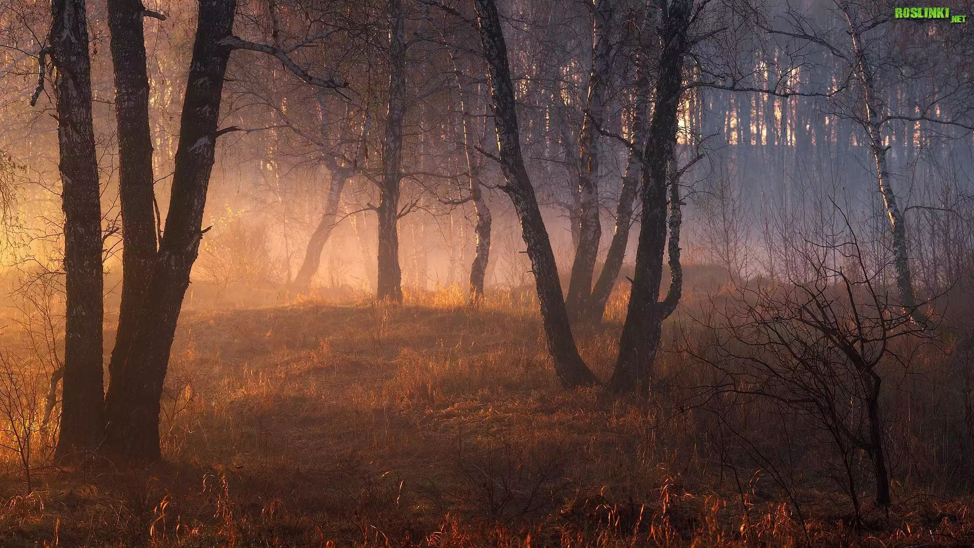 Rośliny: Las, Drzewa, Brzozy, Mgła, Światło, Słoneczne