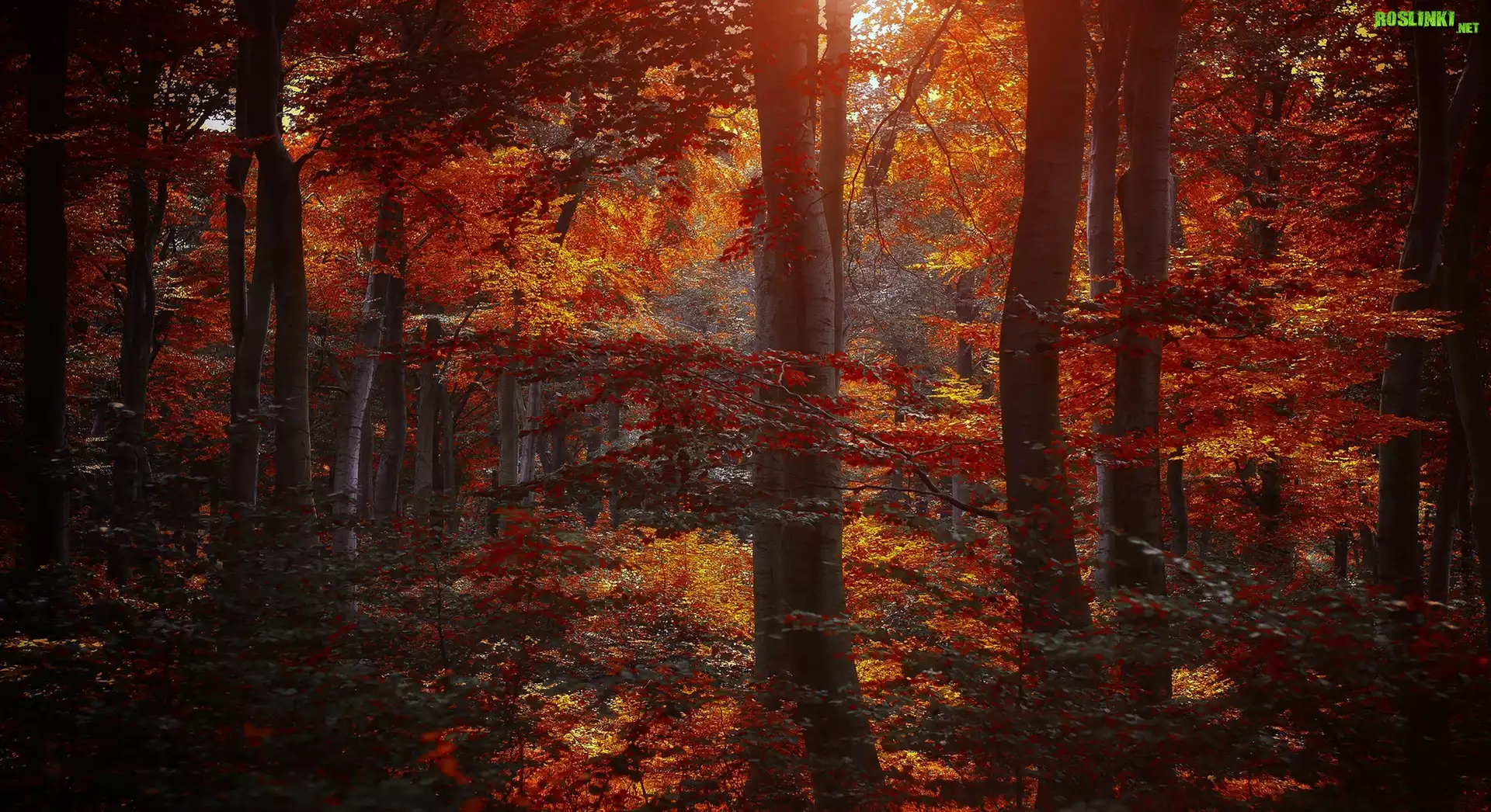Rośliny: Las, Kolorowe, Liście, Przebijające, Światło, Jesień