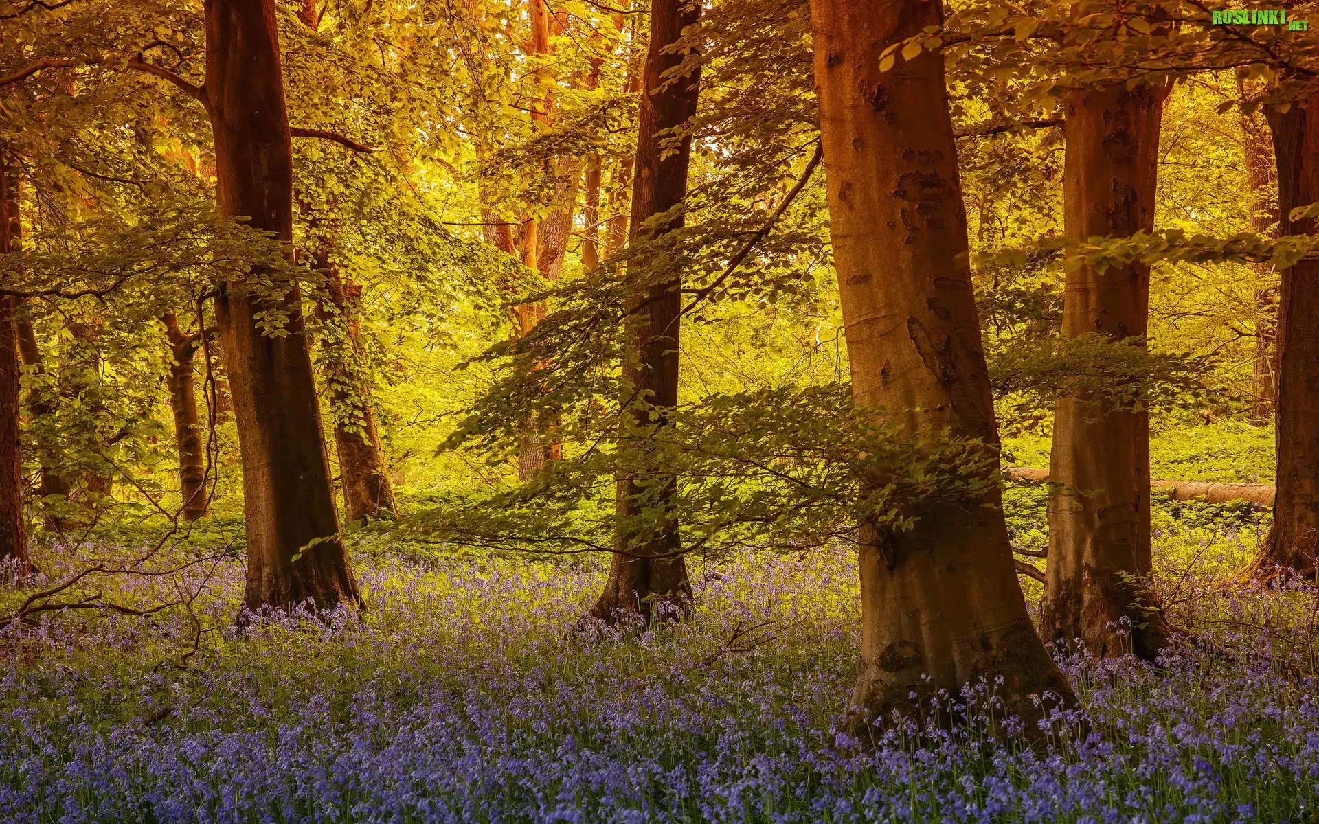 Rośliny: Las, Drzewa, Przebijające, Światło, Kwiaty