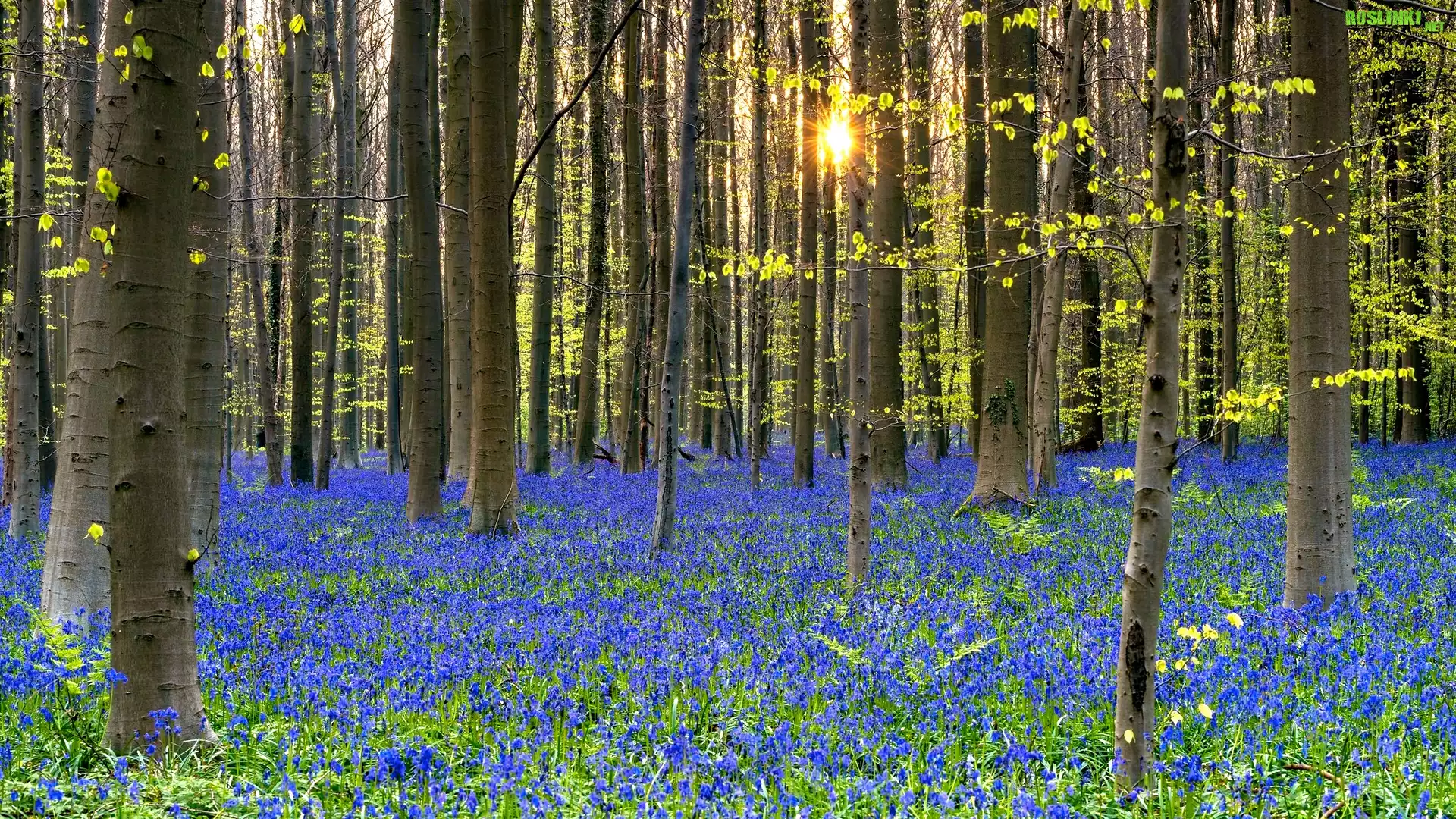 Rośliny: Wiosna, Las, Promienie słońca, Drzewa, Kwiaty, Niebieskie