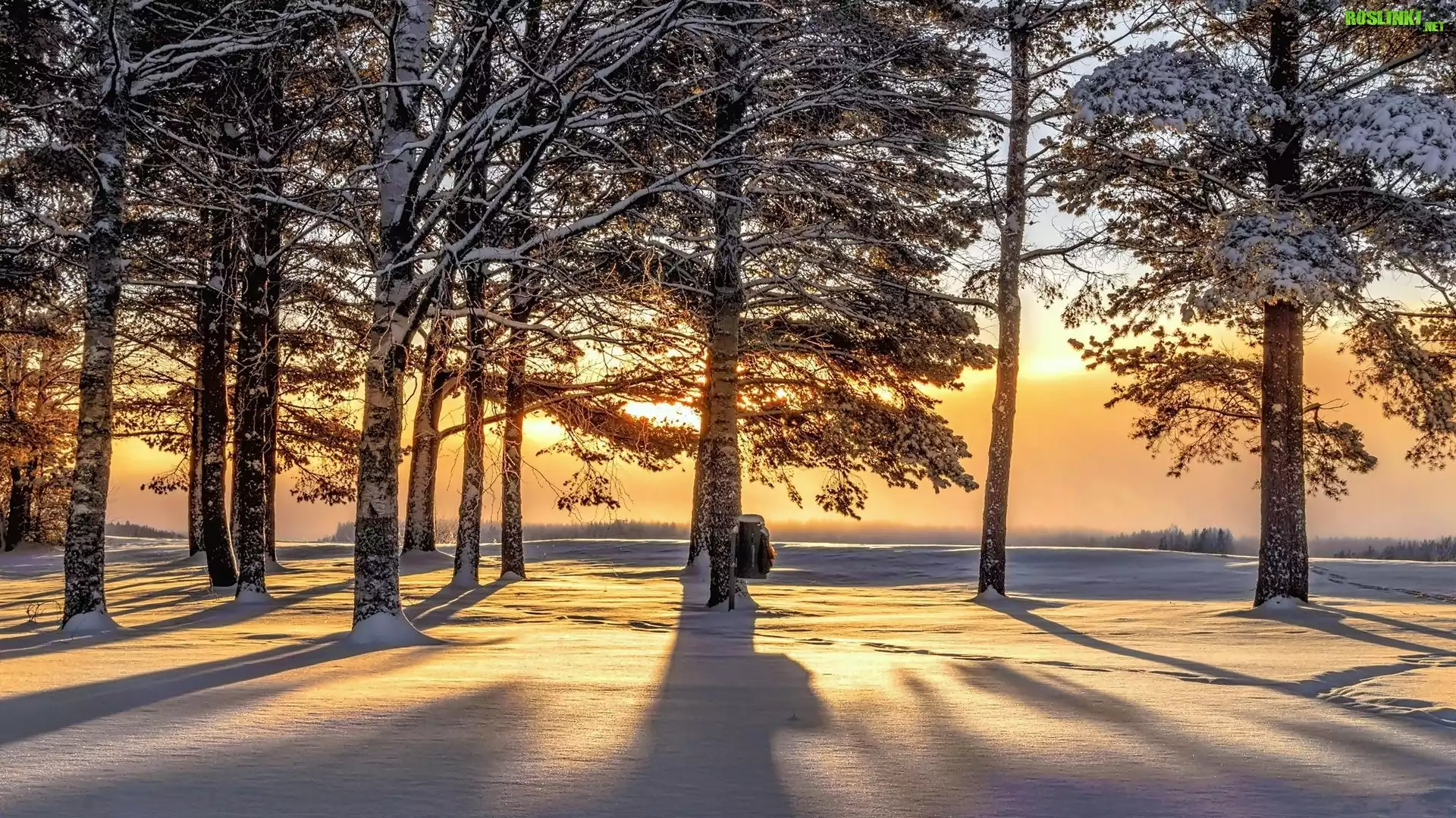 Rośliny: Las, Drzewa, Przebijające światło, Świt, Zima