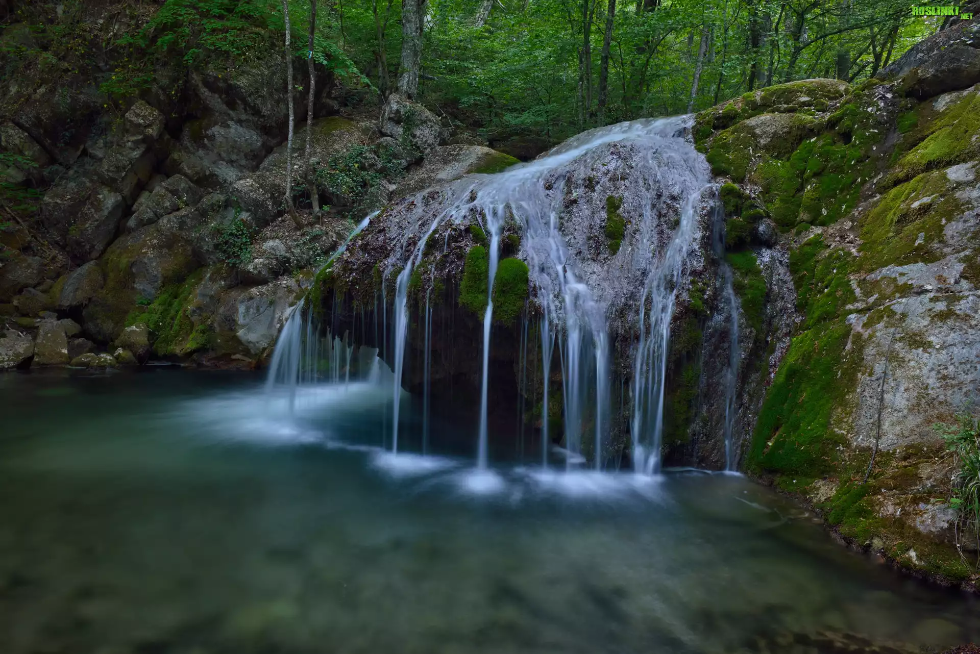 Rośliny: Las, Skały, Drzewa, Wodospad, Rzeka