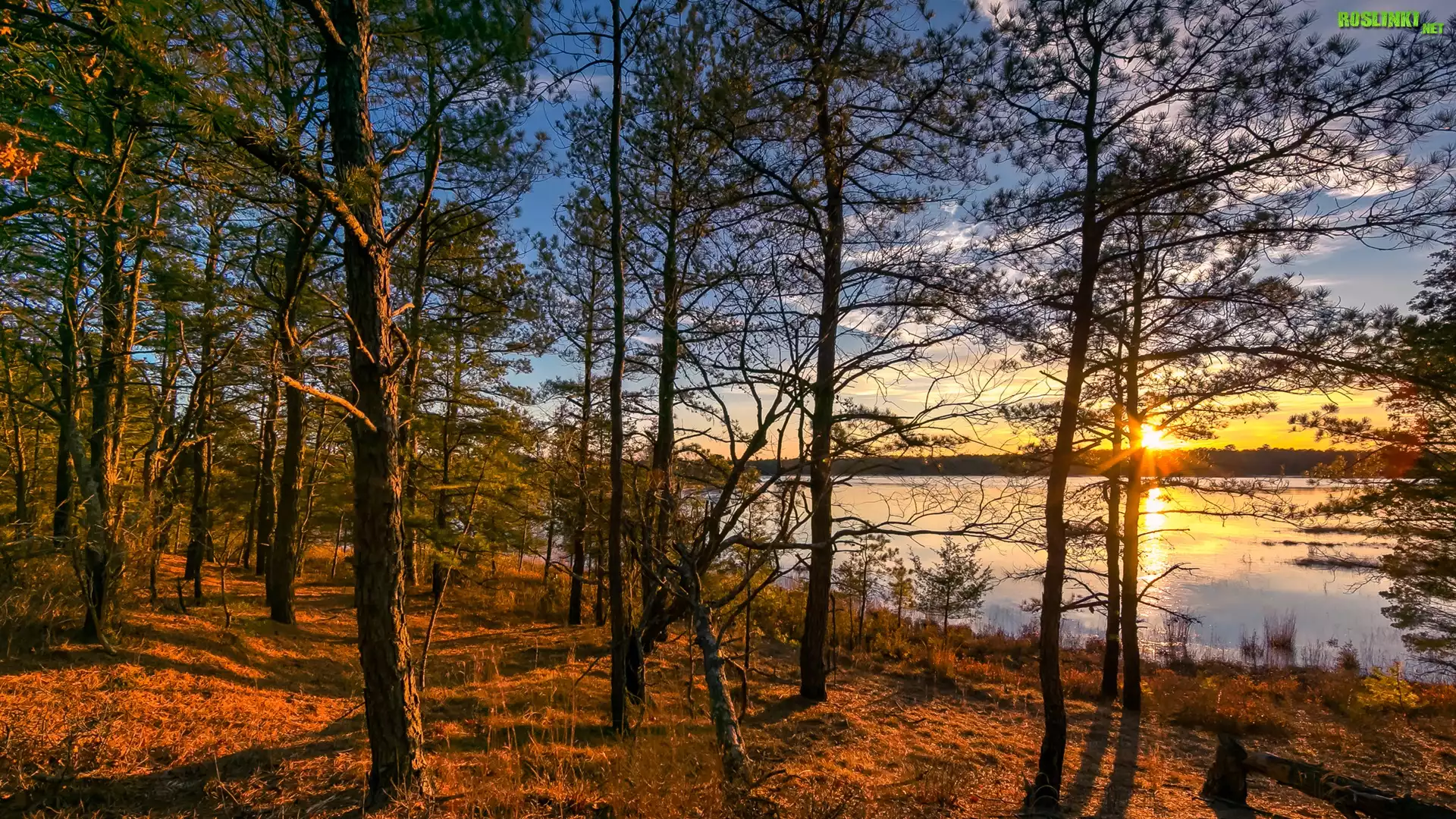 Rośliny: Las, Drzewa, Jezioro, Wschód słońca