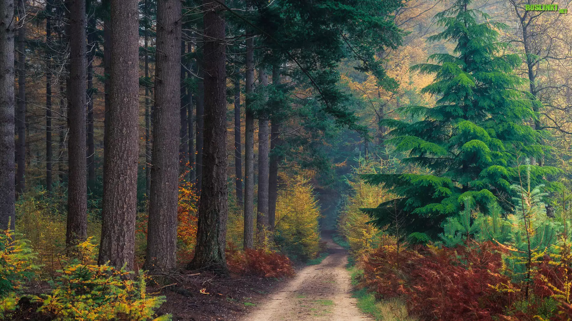 Rośliny: Las, Jesień, Paprocie, Droga, Wysokie, Drzewa