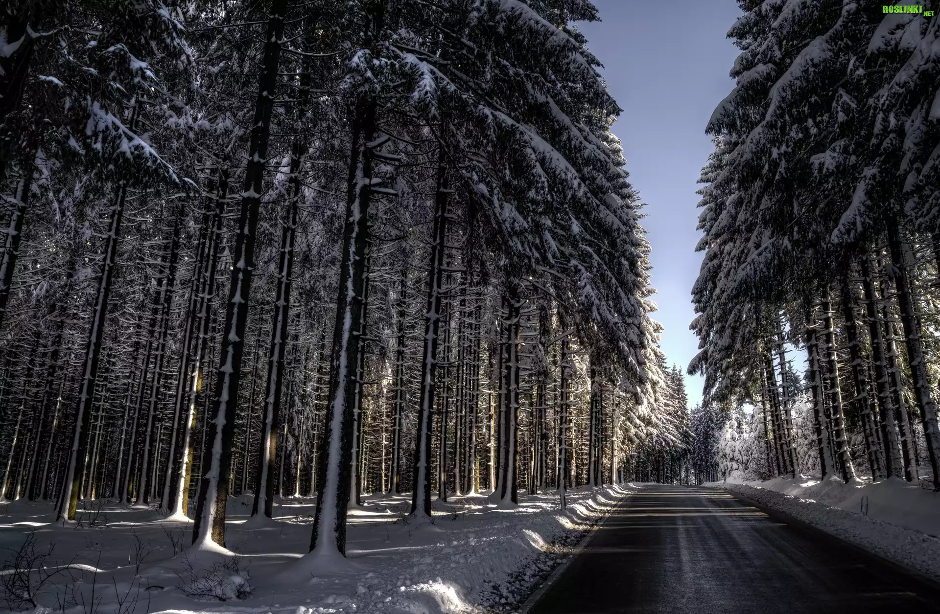 Rośliny: Las, Droga, Zima, Wysokie, Drzewa