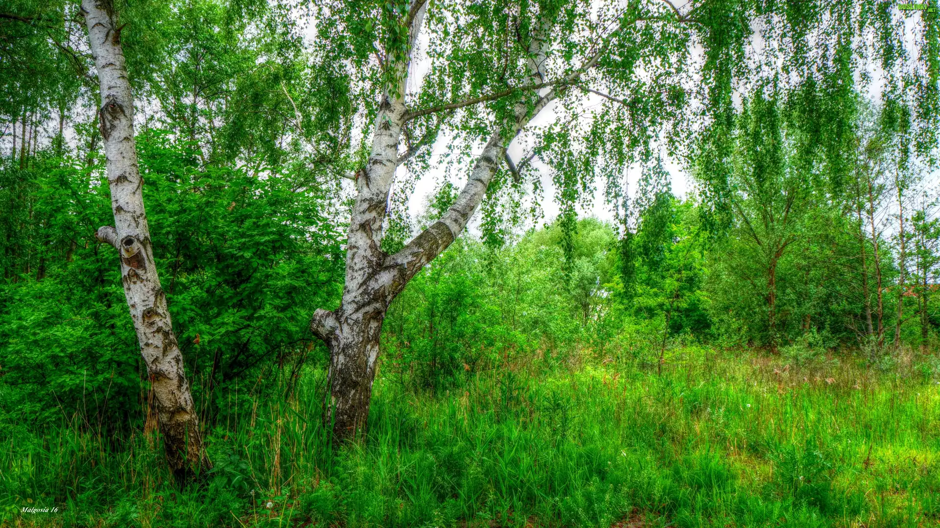 Rośliny: Las, Drzewa, Brzoza, Zieleń, HDR