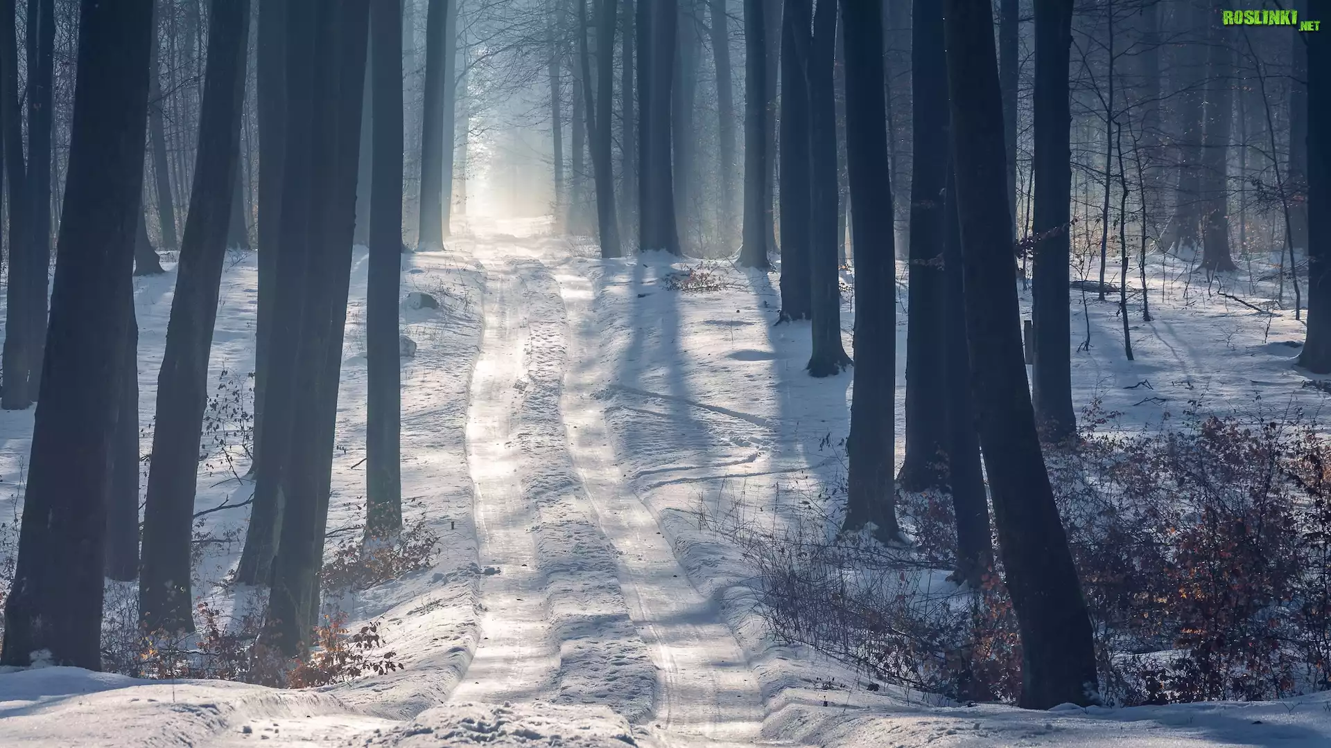 Rośliny: Las, Drzewa, Droga, Zima, Ślady