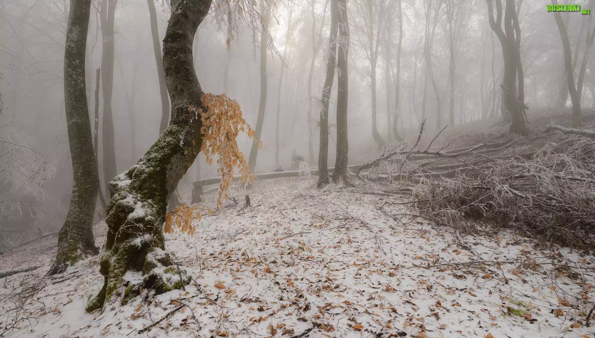 Rośliny: Zima, Las, Drzewa, Mgła, Liście, Przewrócone, Drzewo