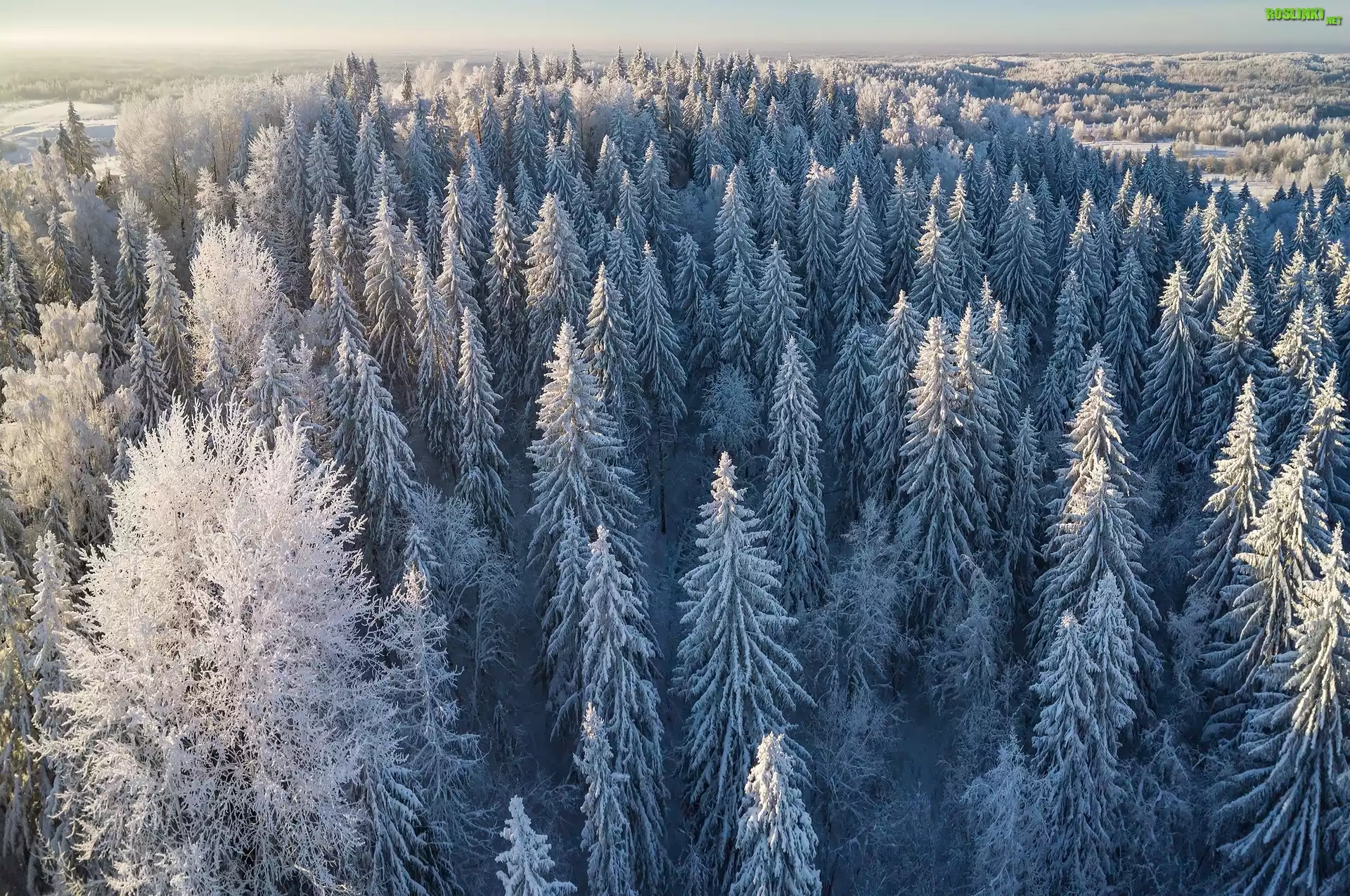 Rośliny: Zima, Drzewa, Oszroniony, Las