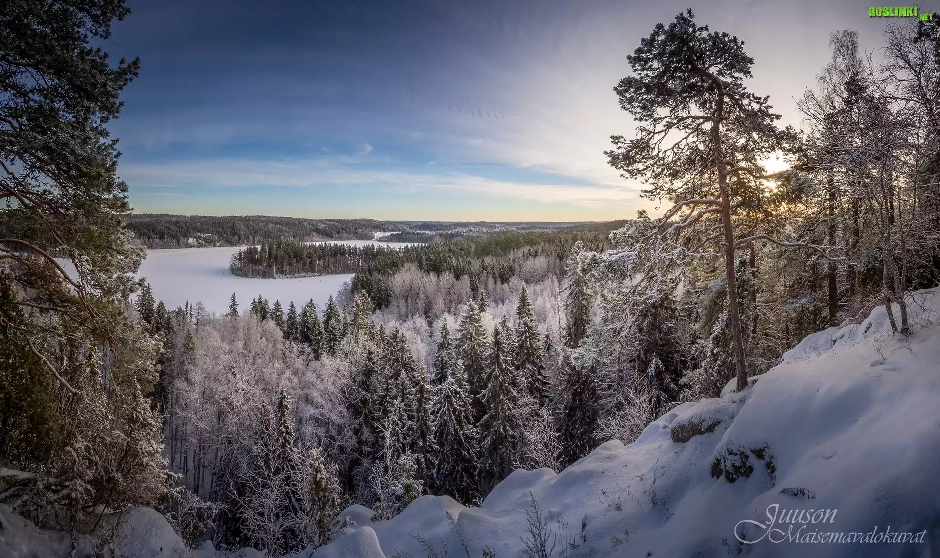 Rośliny: Zima, Park Aulanko, Jezioro Aulangonjarvi, Hameenlinna, Finlandia, Drzewa, Lasy