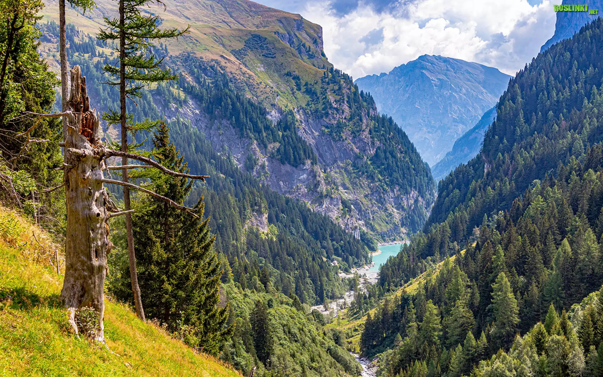 Rośliny: Góry, Lasy, Drzewa, Jezioro, Chmury