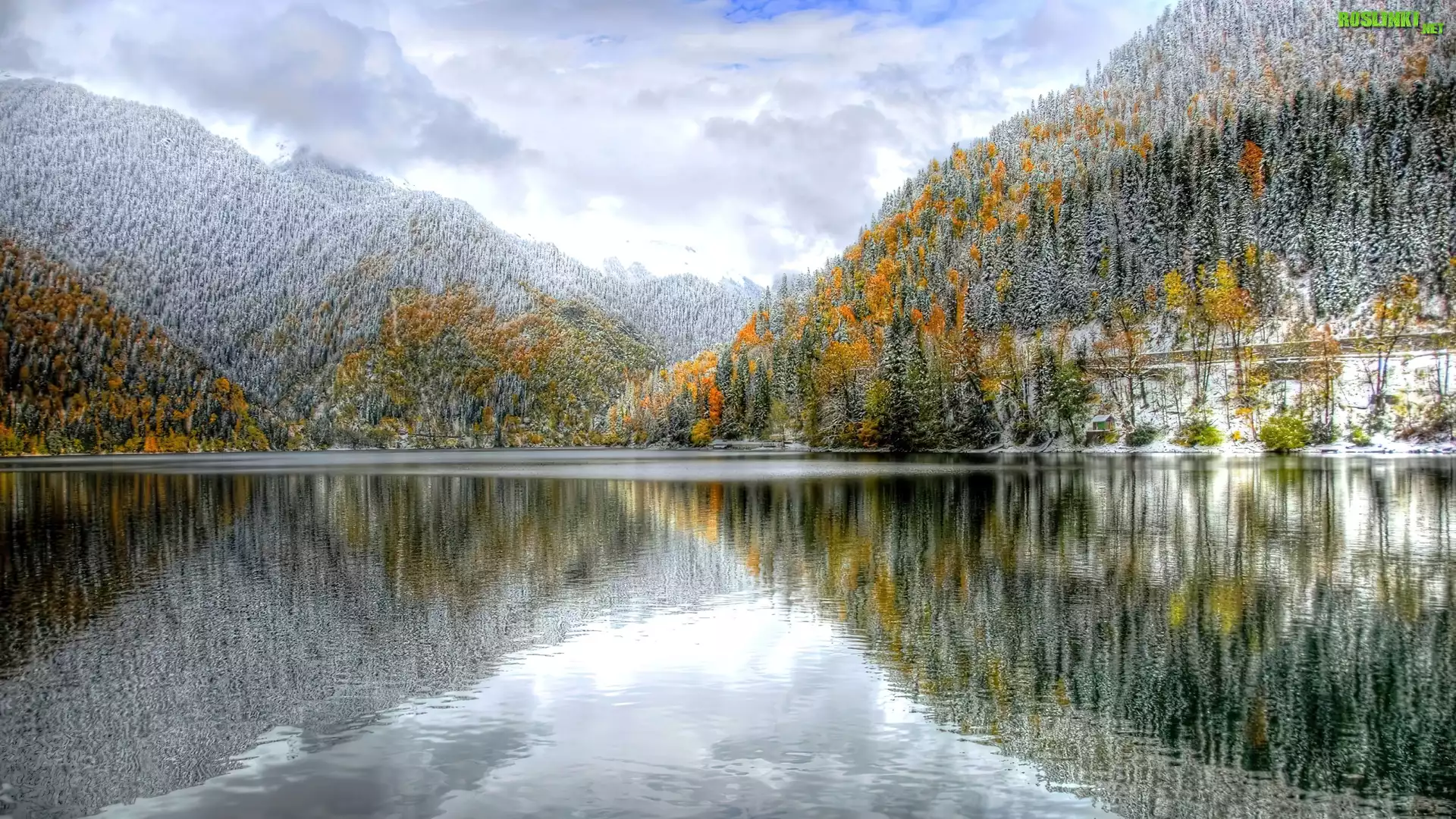 Rośliny: Lasy, Kolorowe, Drzewa, Jezioro, Góry