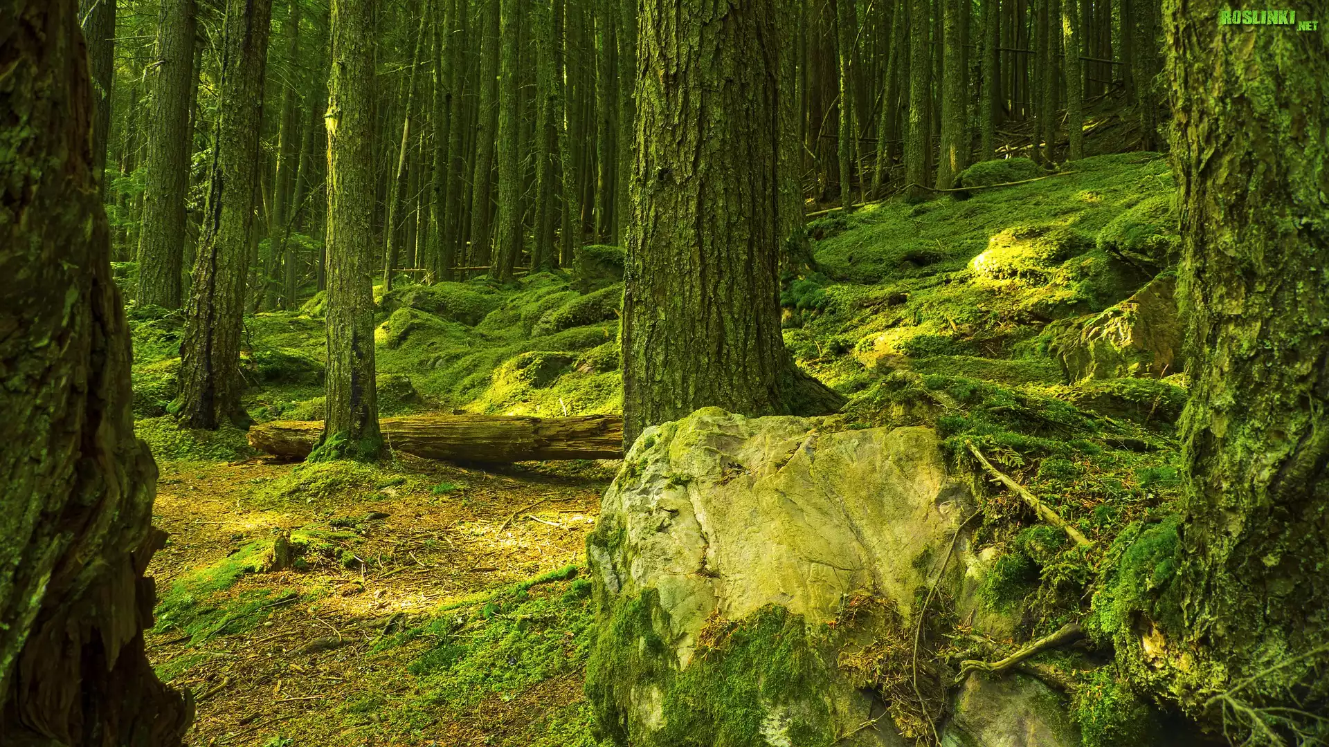 Rośliny: Lasy, Drzewa, Omszałe, Kamienie, Skały