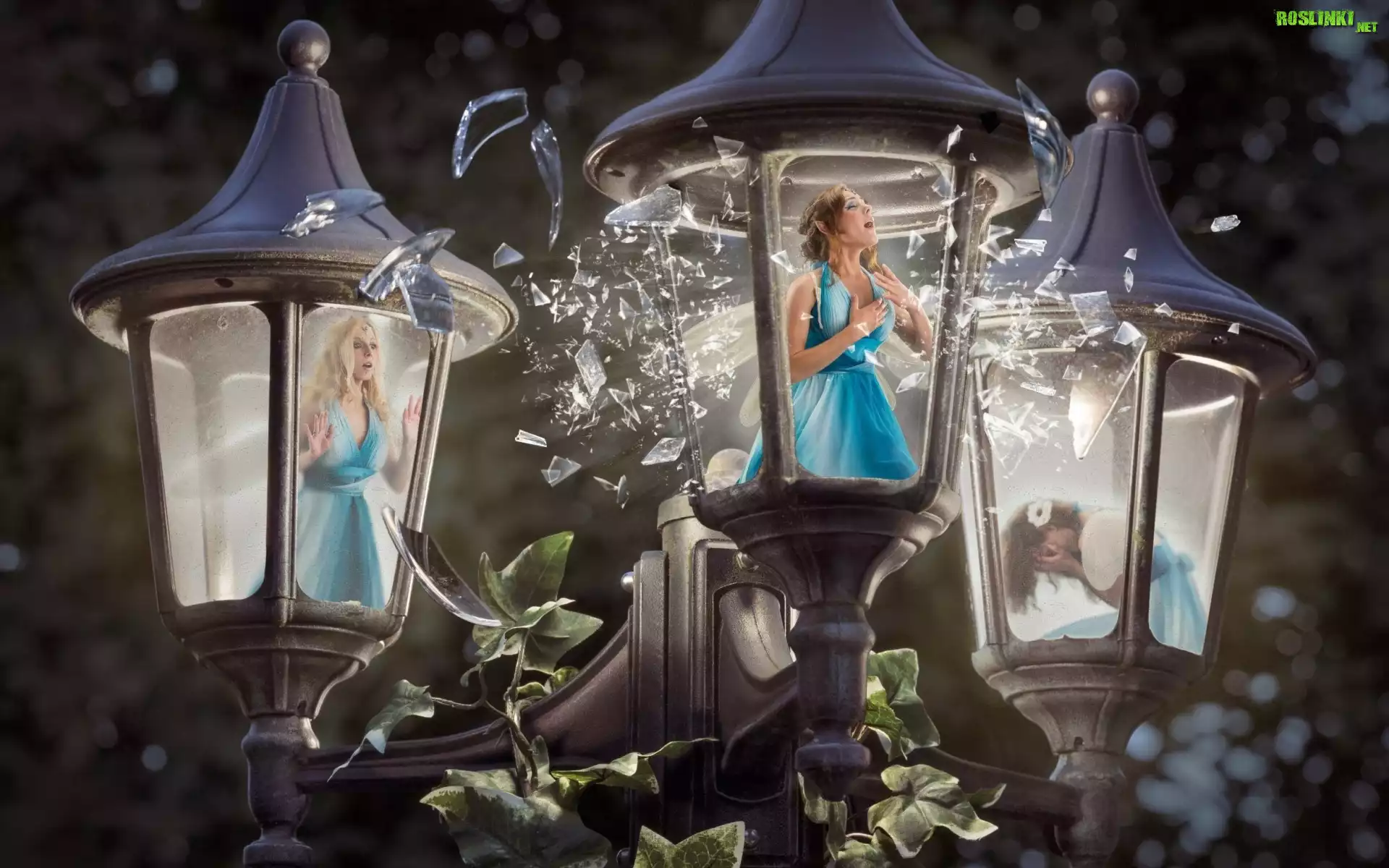 Rośliny: Latarnia, Kobiety, Park, Drzewa, Grafika