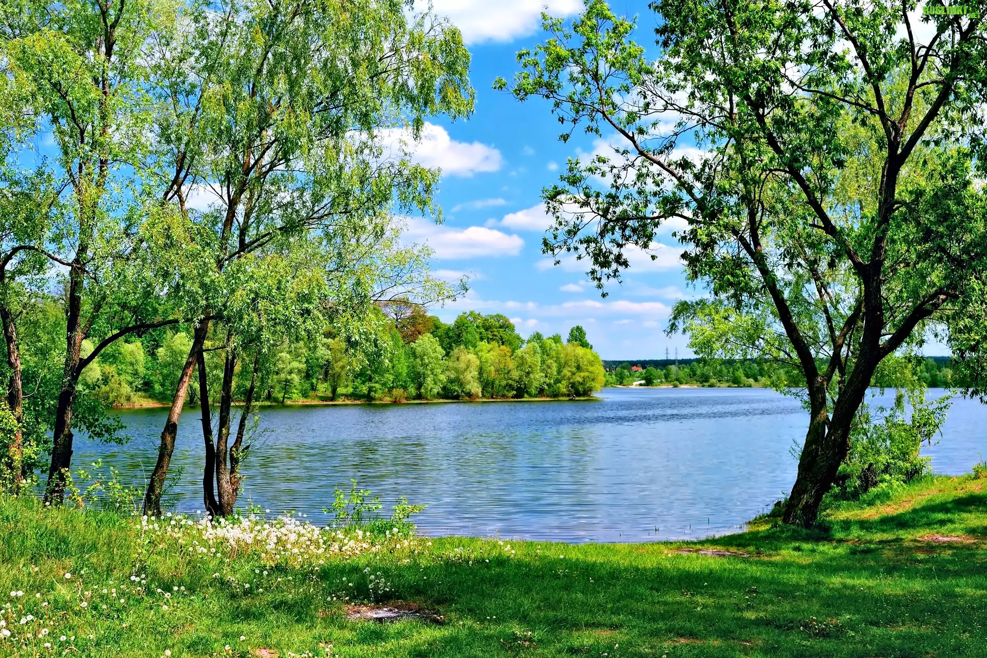 Rośliny: Lato, Jezioro, Drzewa, Trawa