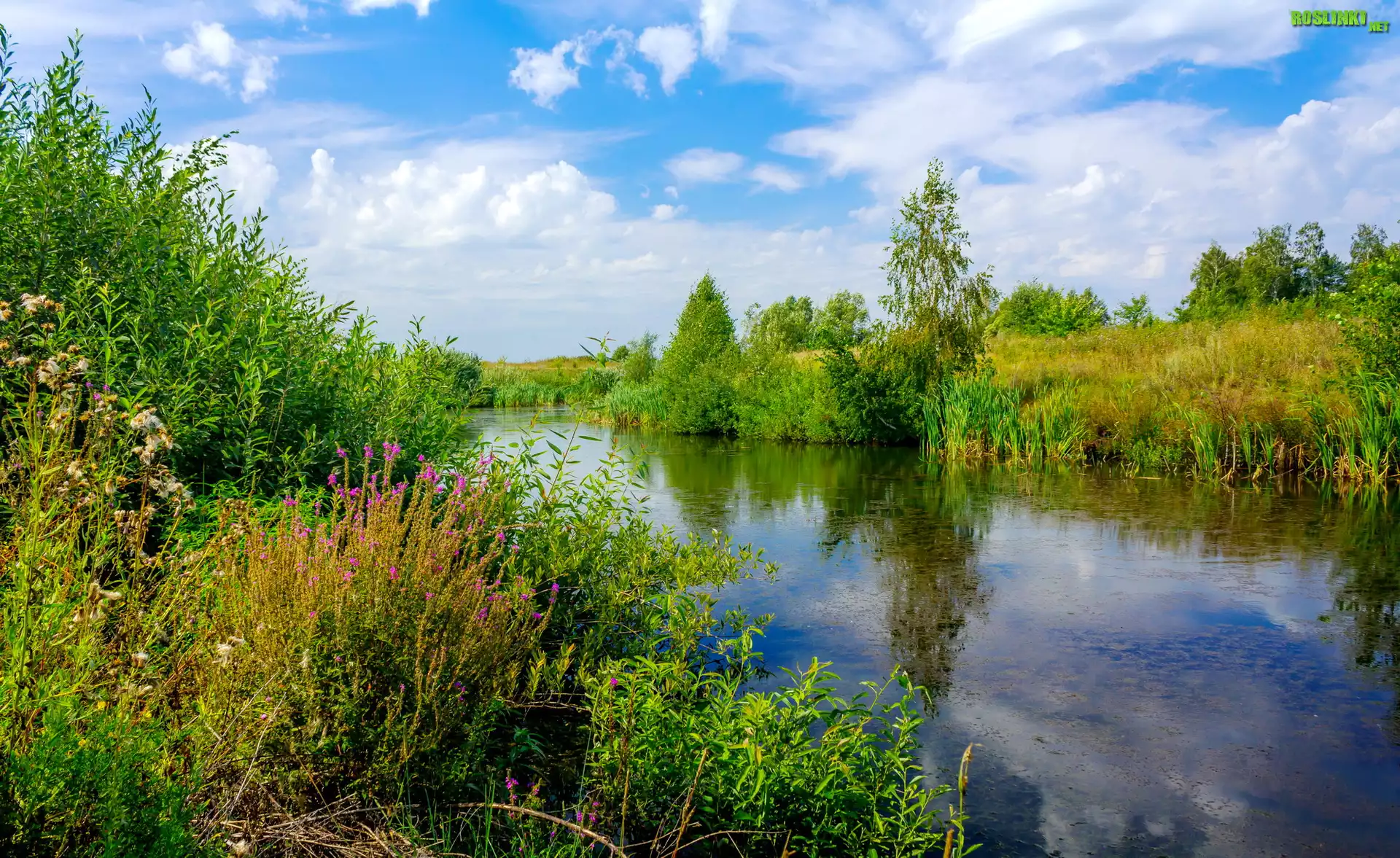 Rośliny: Lato, Rzeka, Drzewa, Kwiaty, Rośliny