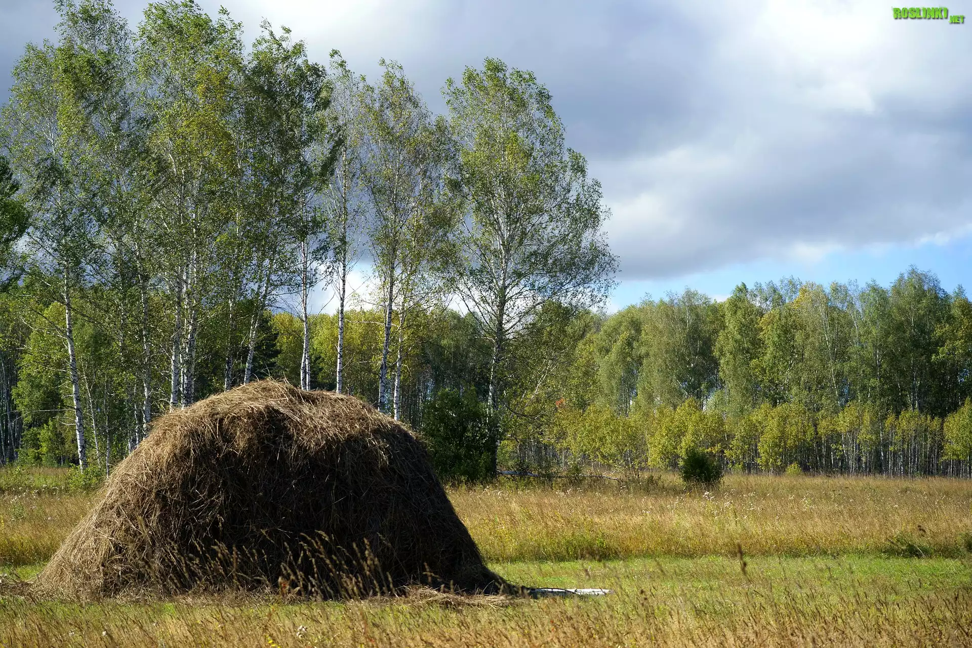 Rośliny: Lato, łąka, Stóg, Siana, Brzozy