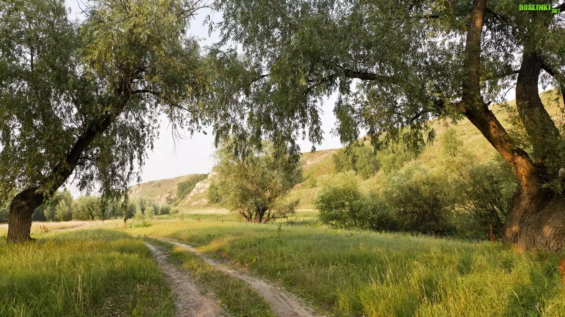 Rośliny: Lato, Polna, Droga, Drzewa, Wierzby, Wzgórze