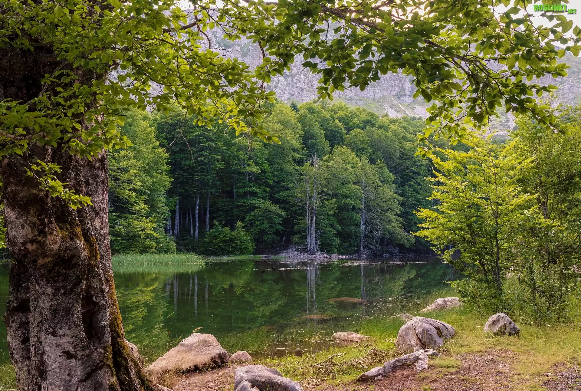 Rośliny: Leśne, Jezioro, Las, Drzewa, Kamienie, Lato
