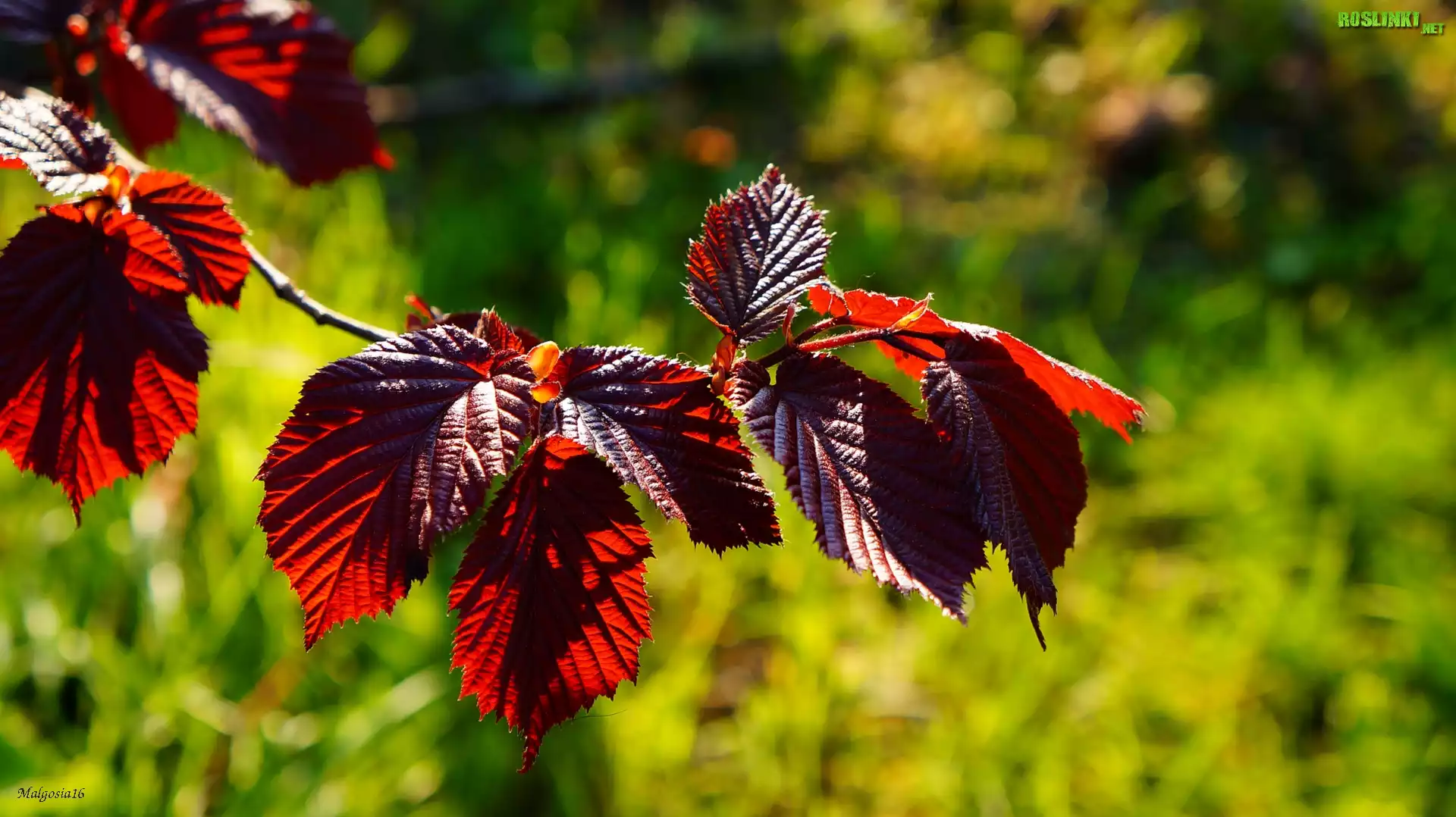 Rośliny: Leszczyna purpurowa, Gałązka, Czerwone, Liście