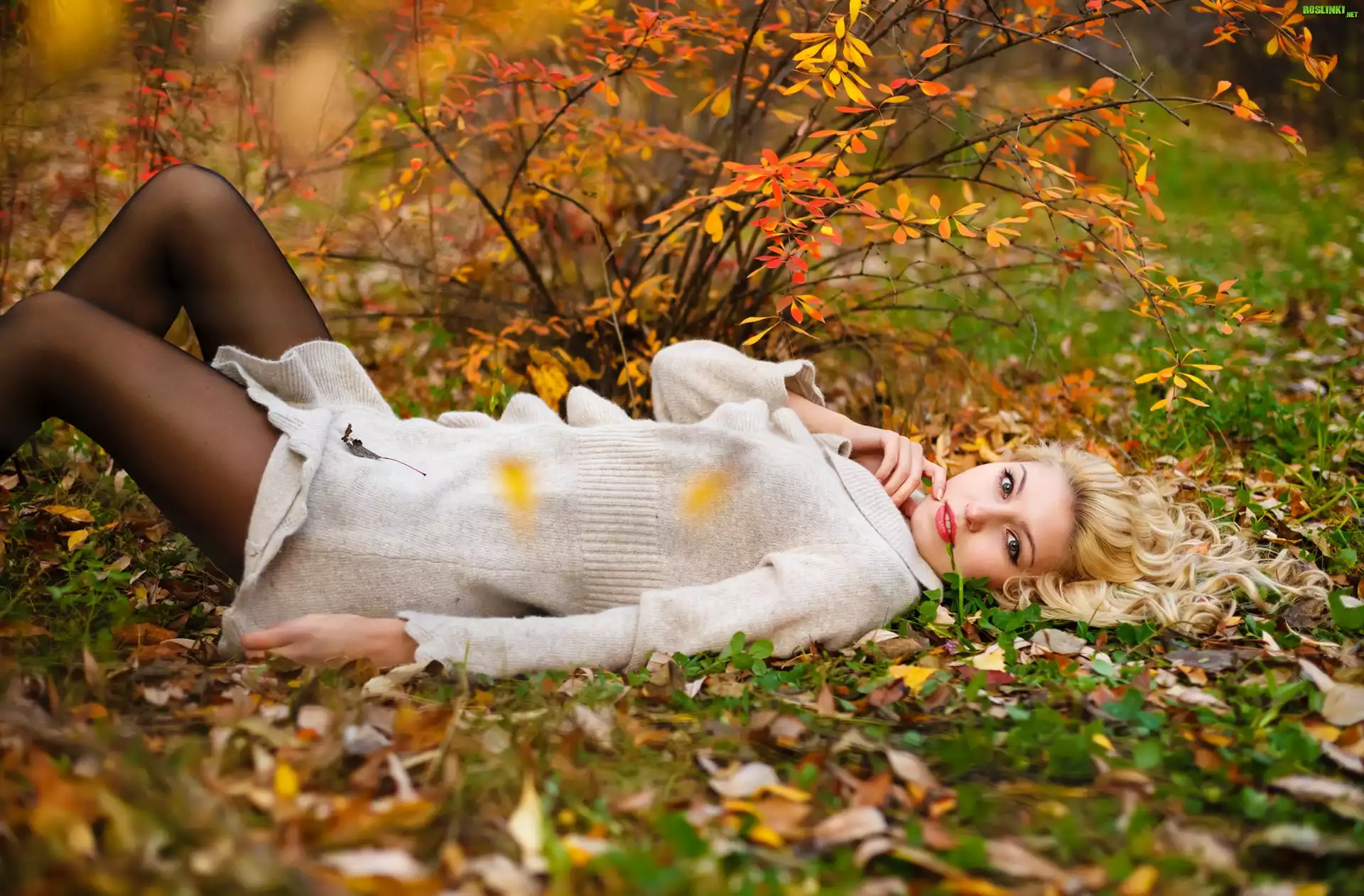 Rośliny: Leżąca,Kobieta,Blondynka,Jesień,Krzaczki, Liście