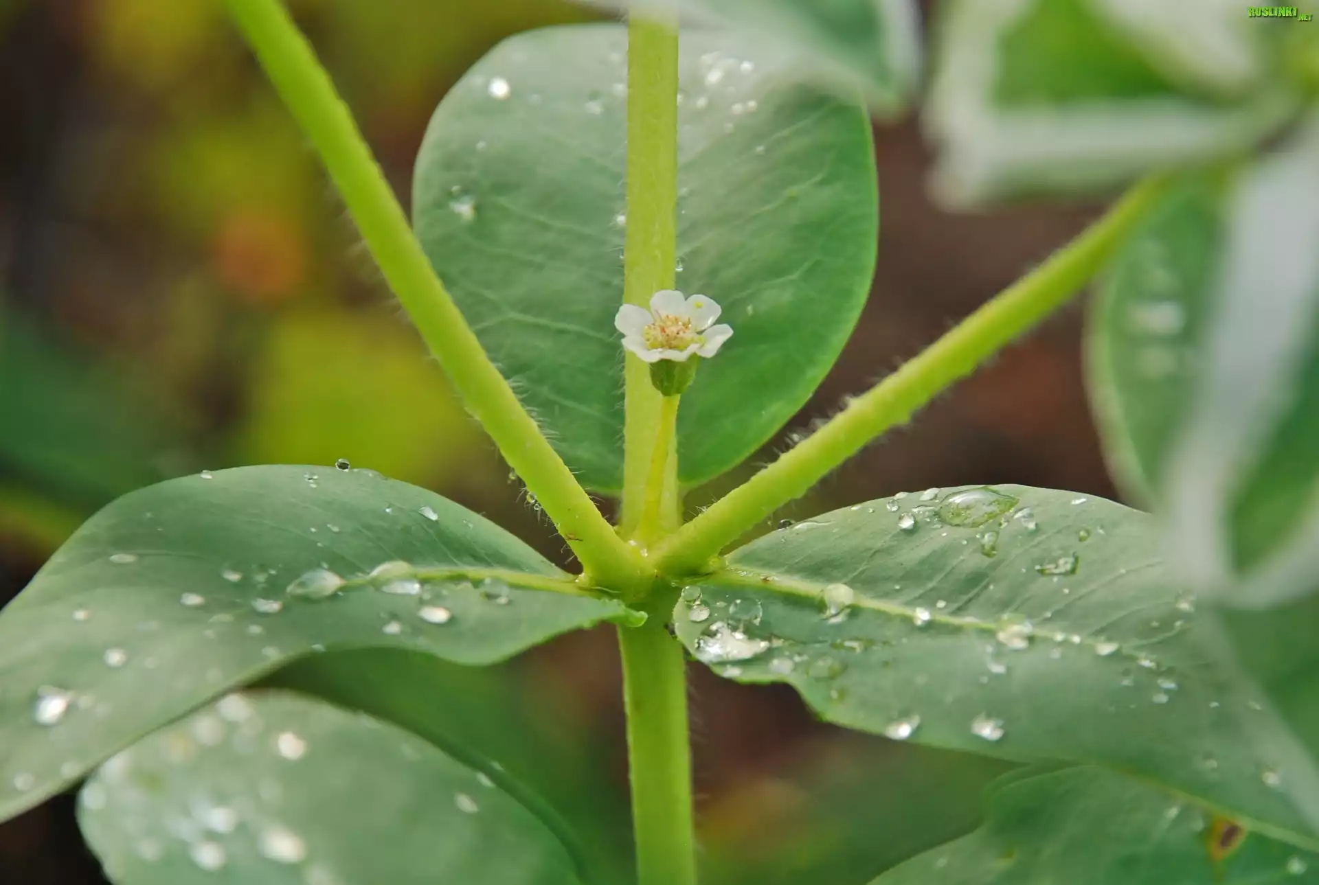 Liście, Łodyga, Krople, Deszczu, Biały, Kwiatek