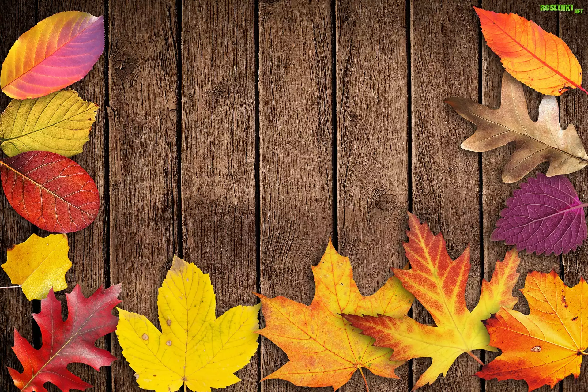 Rośliny: Liście, Jesień, Deski, Kompozycja
