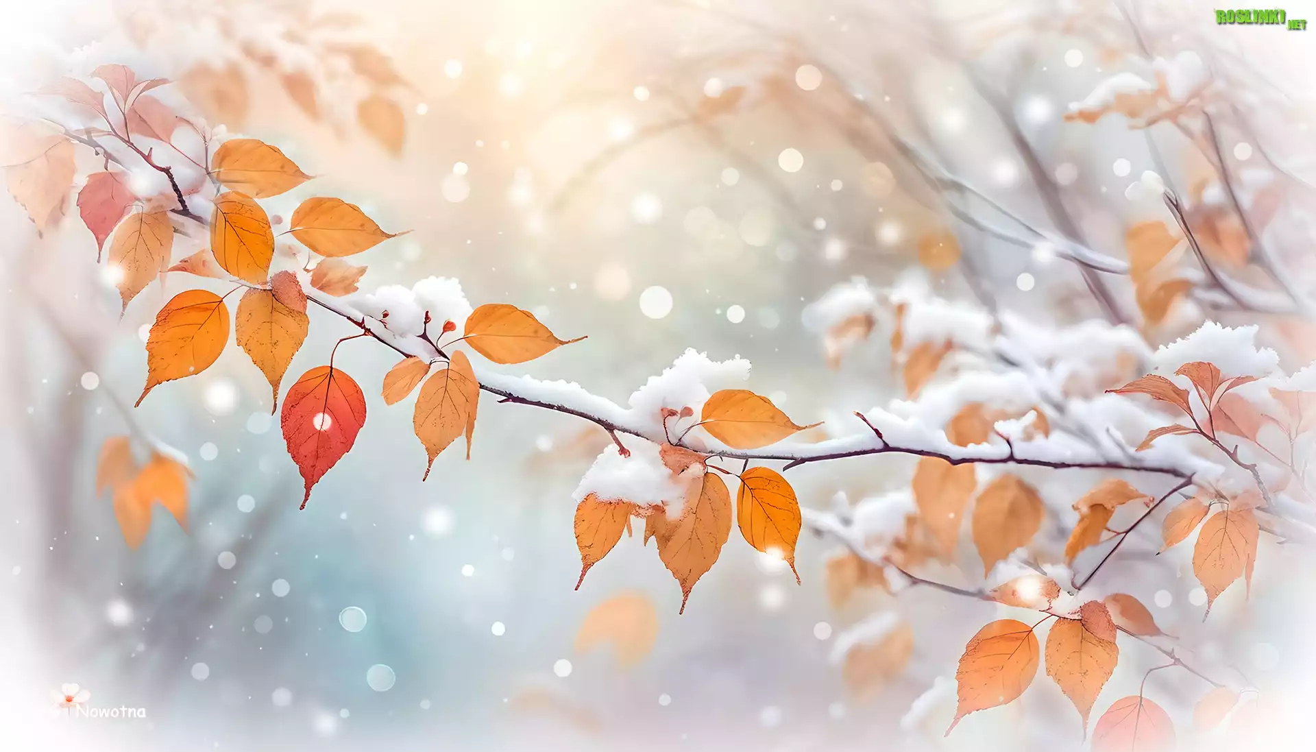 Rośliny: Ośnieżone, Liście, Gałąź, Zima, Grafika