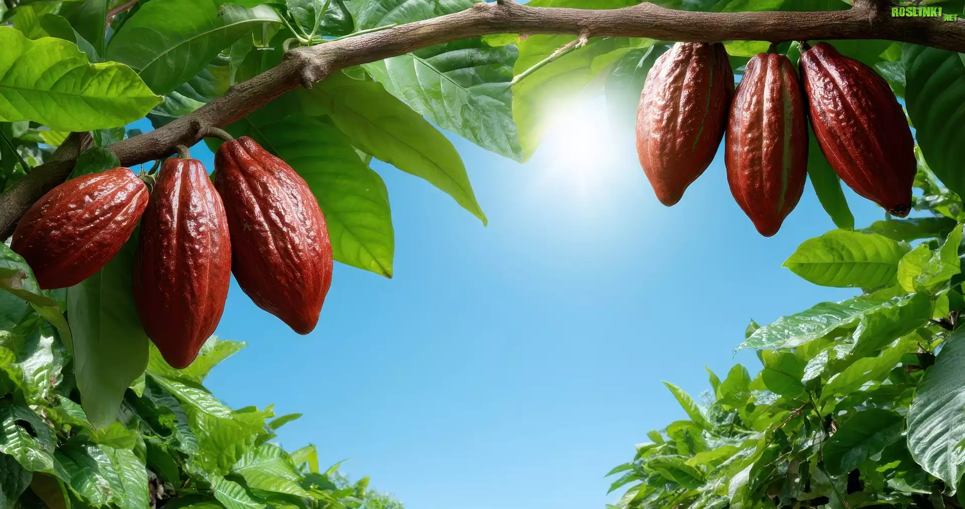 Rośliny: Kakaowiec, Owoce, Gałąź, Liście, Słońce, Grafika, Drzewo