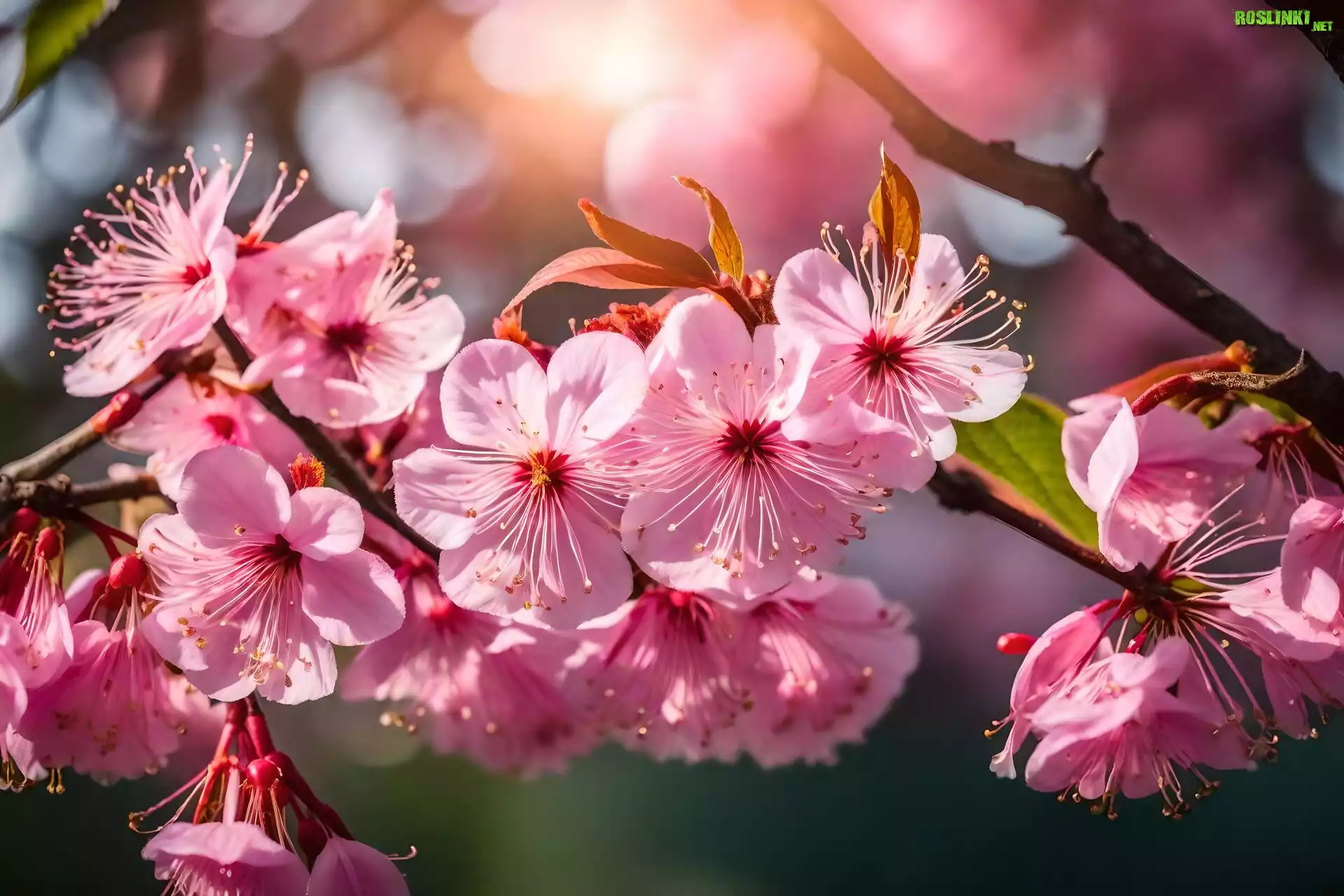 Rośliny: Różowe, Kwiaty, Gałęzie, Liście, Drzewo owocowe, Zbliżenie