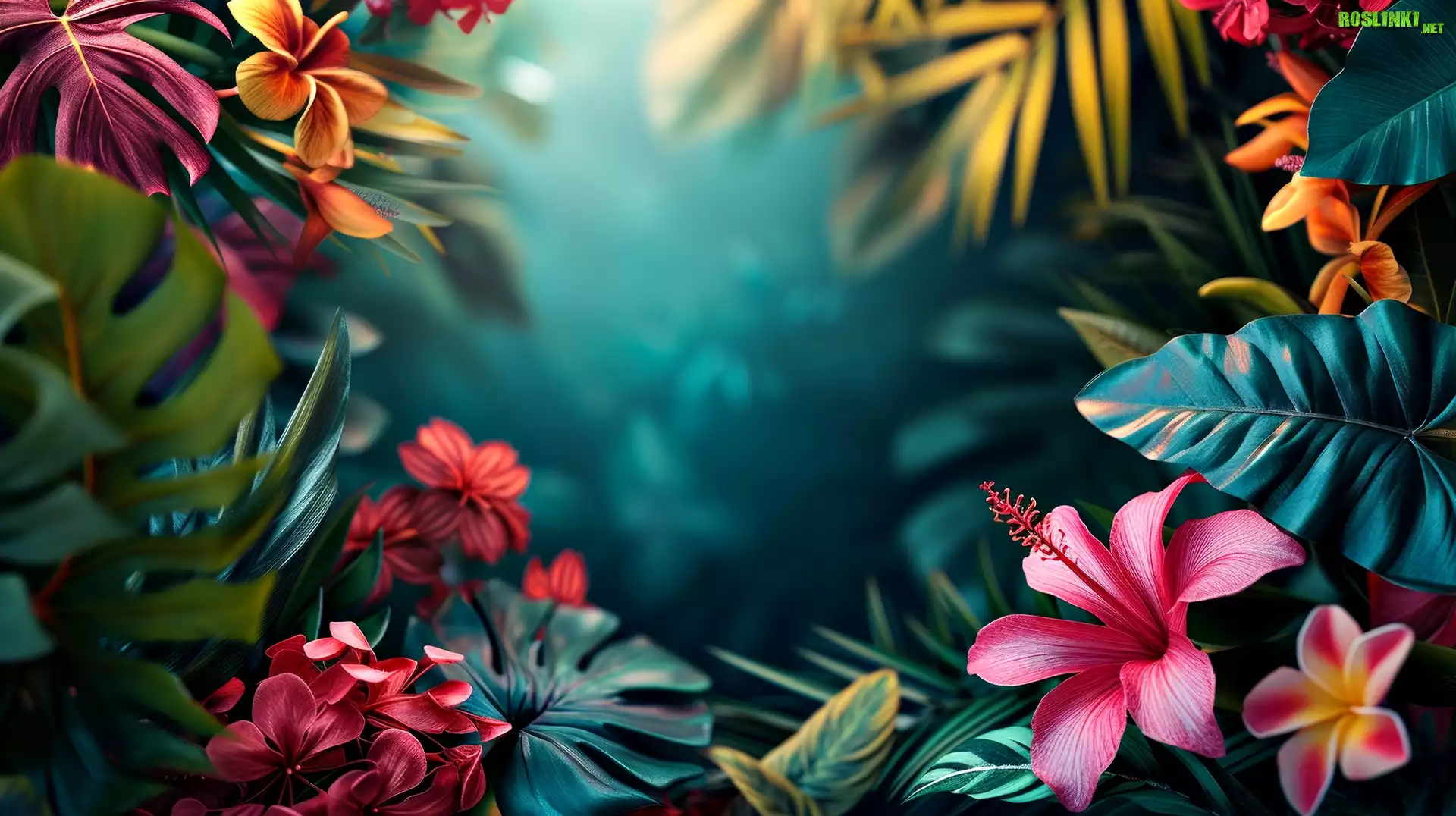 Rośliny: Dżungla, Kolorowe, Kwiaty, Liście, Światło, Grafika