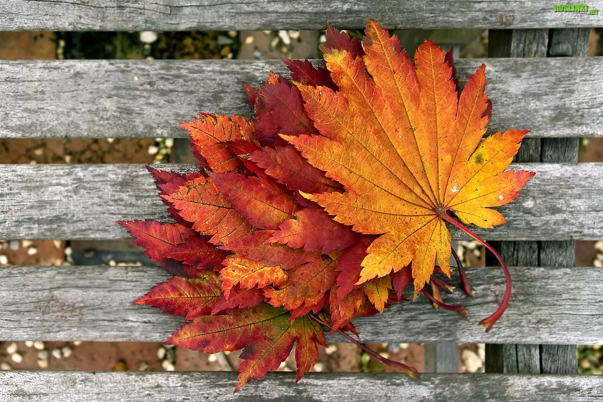 Rośliny: Jesień, Liście, Ławka