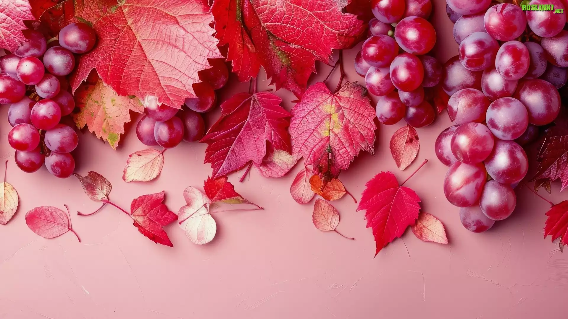 Rośliny: Kiście, Winogrona, Czerwone, Liście