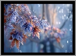 Oszronione, Liście, Klon, Grafika AI