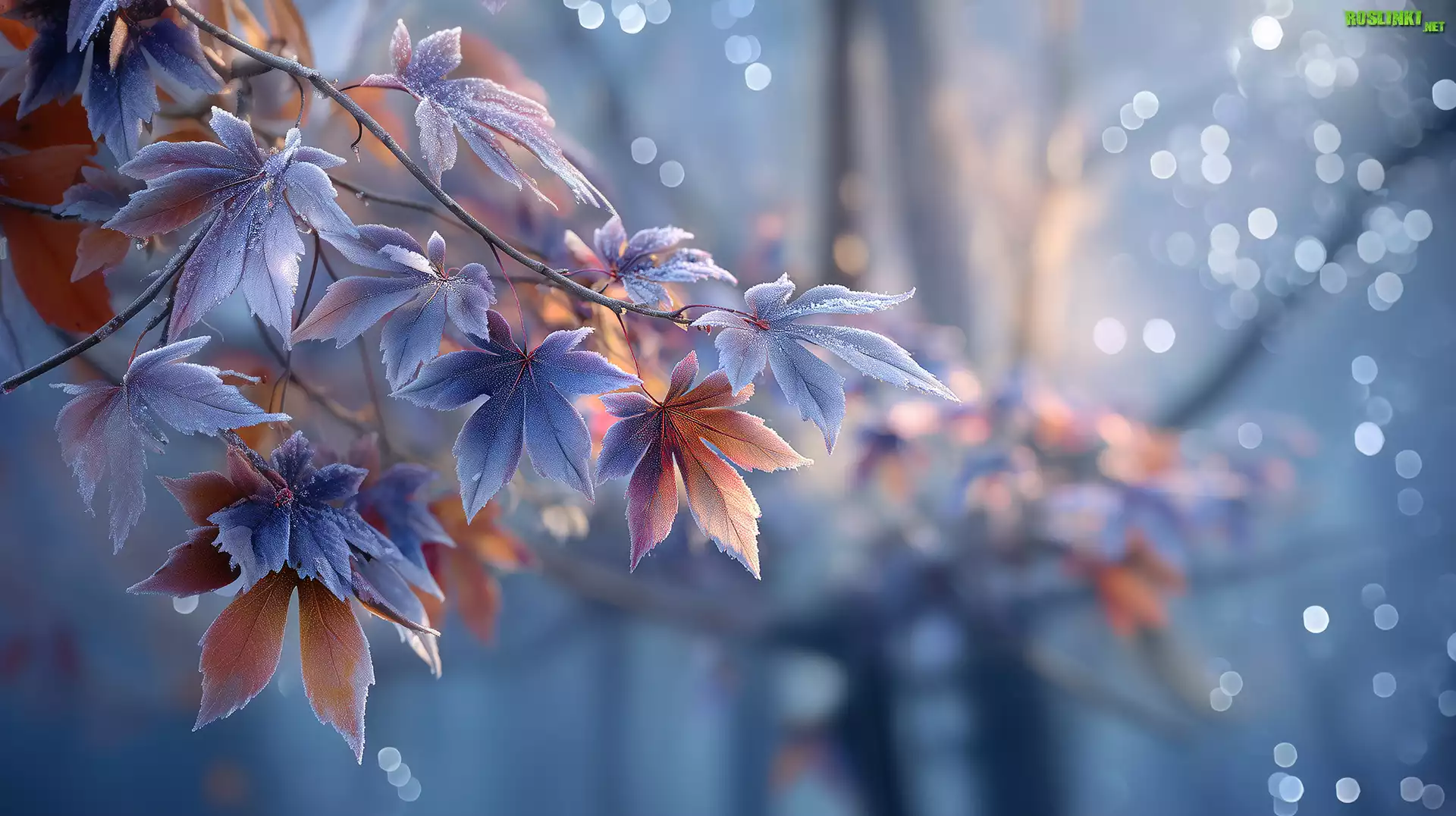 Rośliny: Oszronione, Liście, Klon, Grafika AI