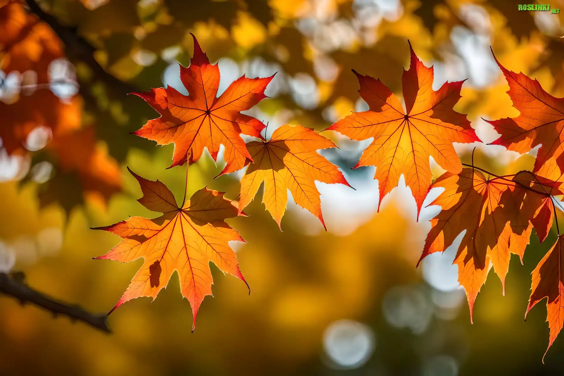 Rośliny: Jesień, Liście, Klon, Światło, Grafika