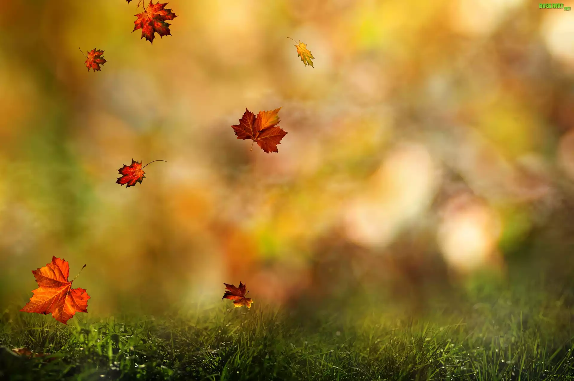 Kolorowe, Liście, Trawa