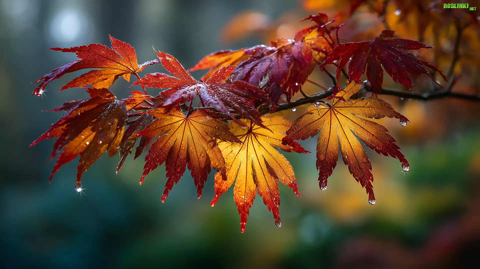 Rośliny: Klon, Liście, Krople, Grafika AI