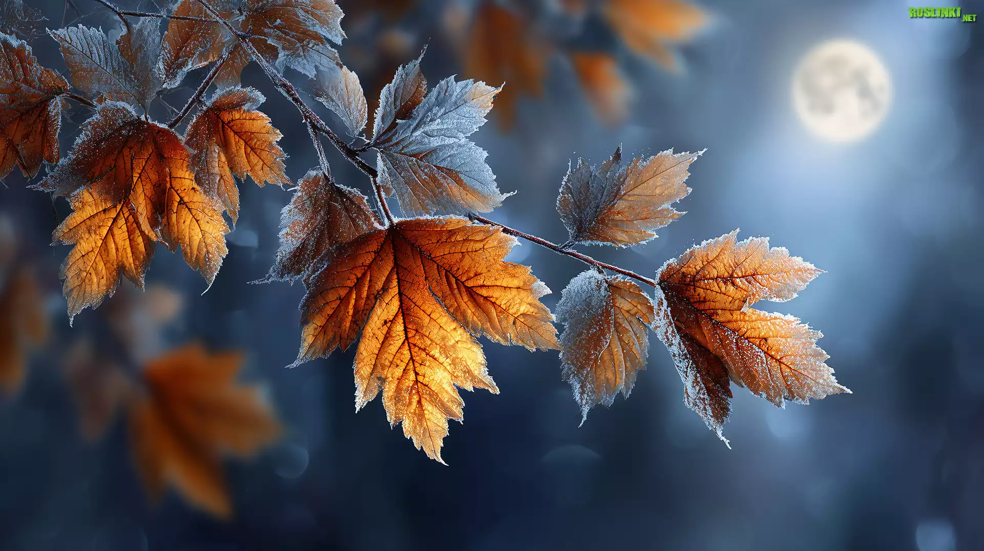 Rośliny: Oszronione, Liście, Księżyc, Grafika AI